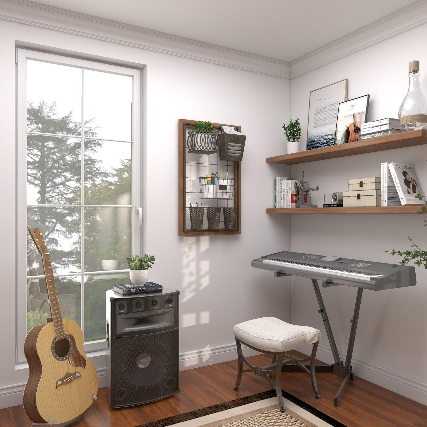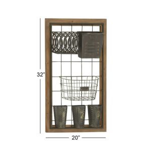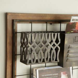 DecMode 32″ Brown Metal 1 Slot and 5 Baskets Magazine Rack Holder with Suspended Baskets and Label Slot is a unique addition to your stylish home. The perfect compact storage for your belongings while keeping your space free of clutter. Bring a finishing touch to your home with an inviting appeal with this chic magazine holder. This wall-mount storage organizer serves as a multifunctional decor and compartment for magazines, pens, tools, aprons, slippers, or anything that needs to be beautifully tucked away. This item ships in 1 carton. Can be hung vertically using the keyholes on the back; nails and screws not included. Suitable for indoor use only. This item ships fully assembled in one piece. Maximum weight limit is 20 lbs. This is a single brown colored wall mail organizer. Farmhouse style.