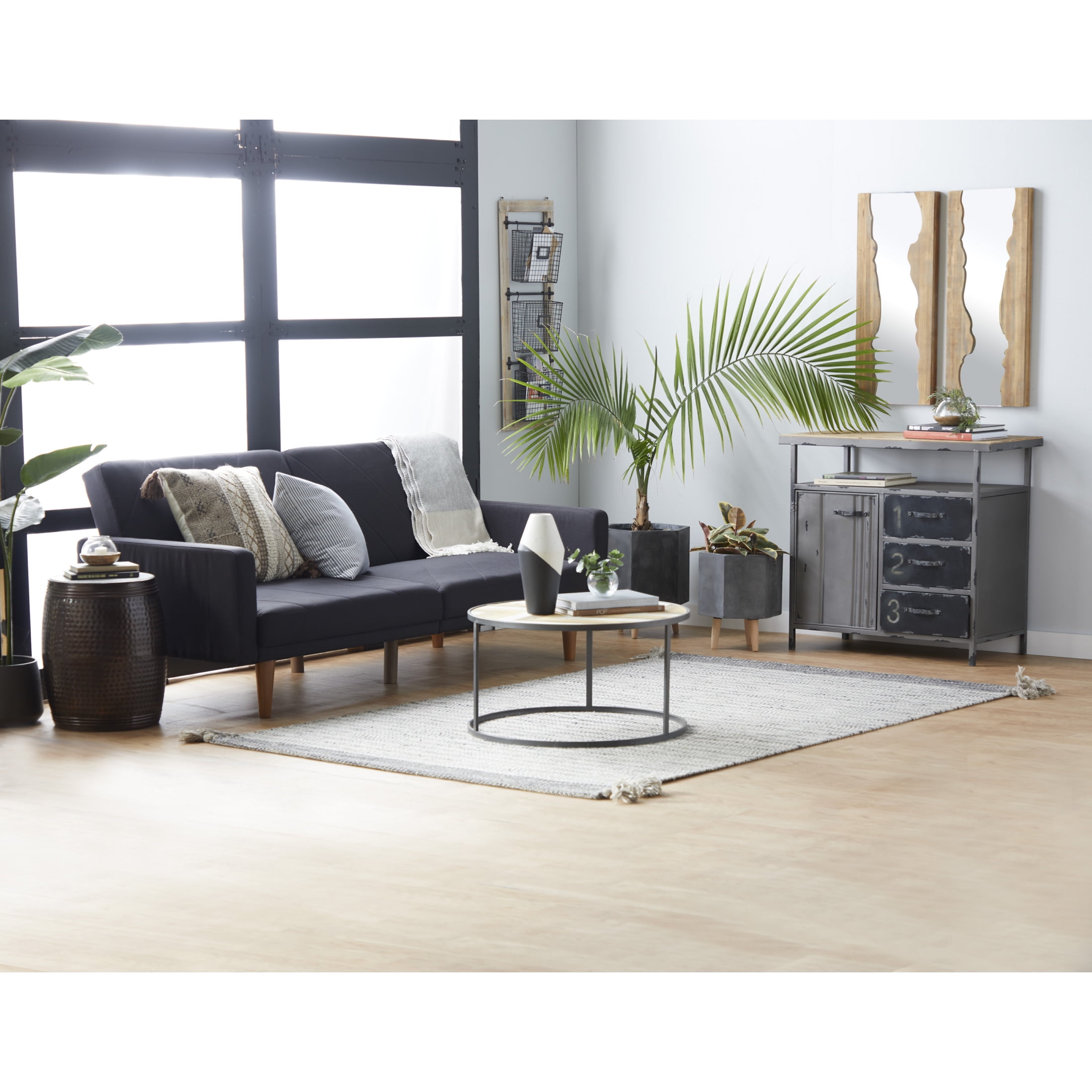 DecMode 20″ Black Metal Matte Curved Magazine Holder with Arched Handle and Flared Legs