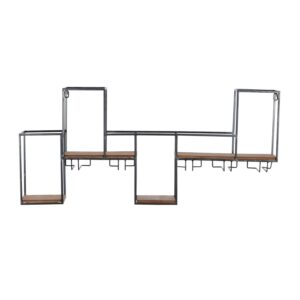DecMode 36 x 16 Black Metal Geometric 7 Bottles Wall Wine Rack with 5 Glass Holder Slots, 1-Piece