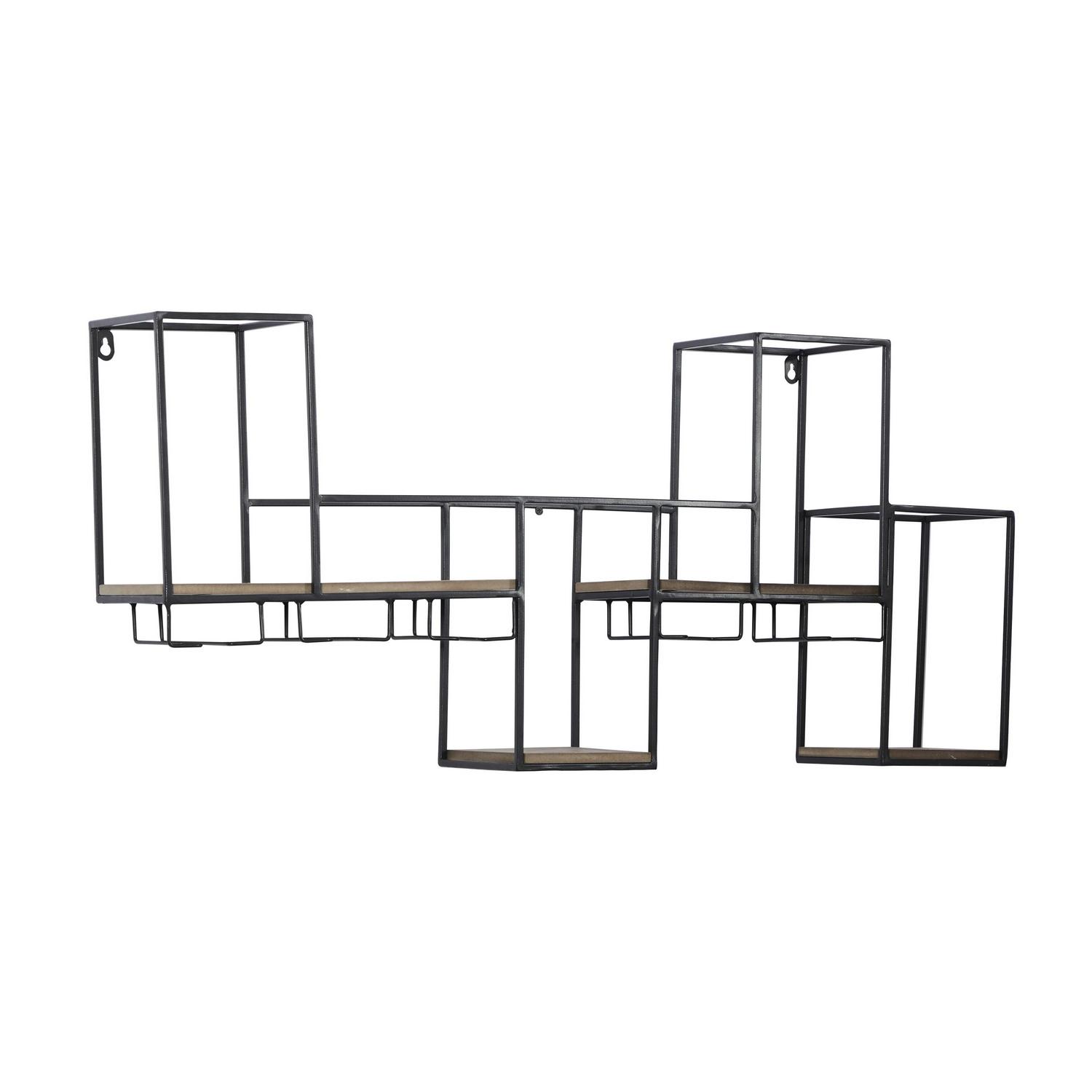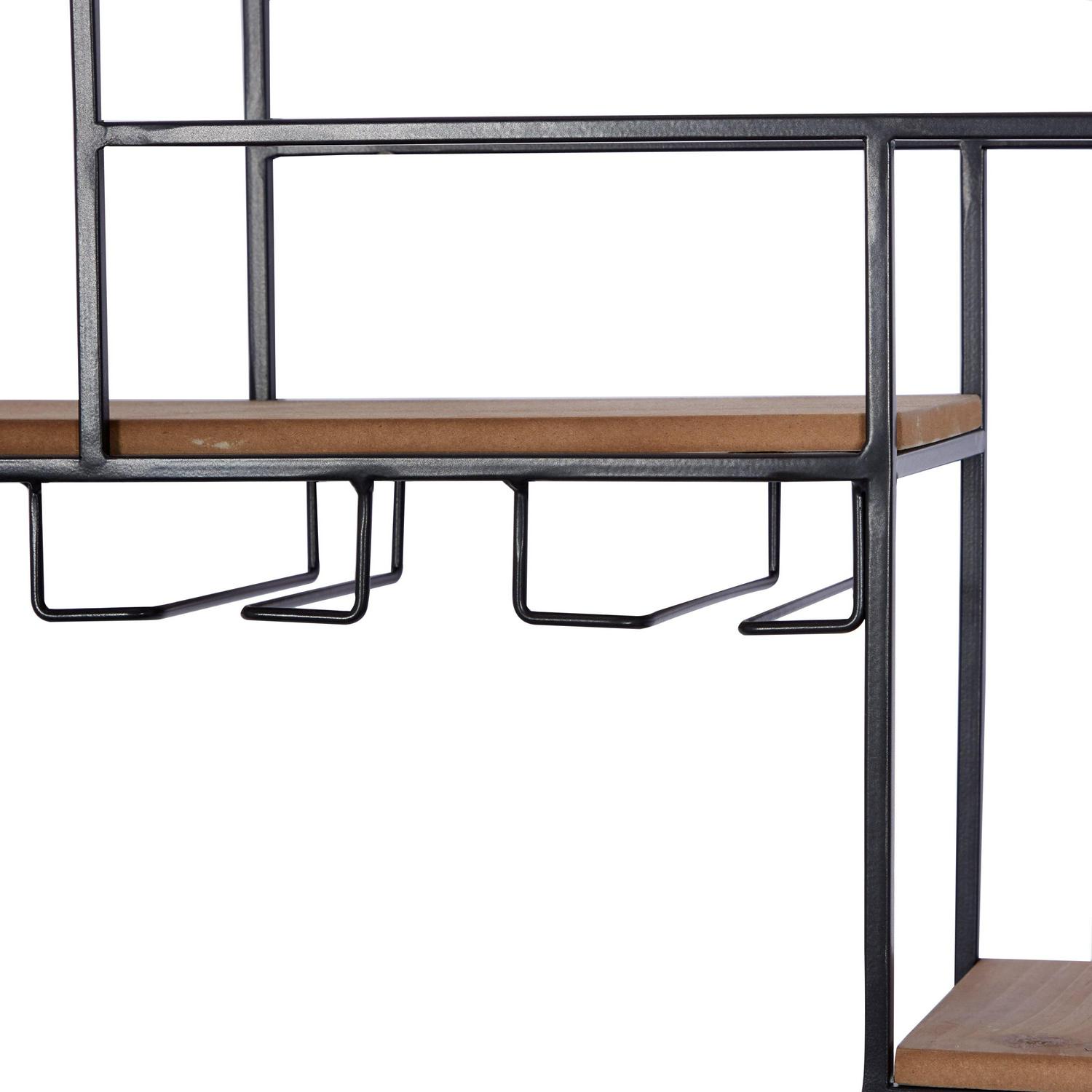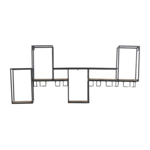 DecMode 36″ x 16″ Black Metal Geometric 7 Bottles Wall Wine Rack with 5 Glass Holder Slots, 1-Piece is a unique addition to your stylish home. Decorate it with mini potted plants to bring the plain appearance to life. This item ships in 1 carton. Can be hung horizontally using the keyholes on the back; nails and screws not included. Suitable for indoor use only. This item ships fully assembled in one piece. Maximum weight limit is 50 lbs. This is a single black colored wall mounted wine holder. Contemporary style. Black wall wine rack can hold 6 average wine bottles.