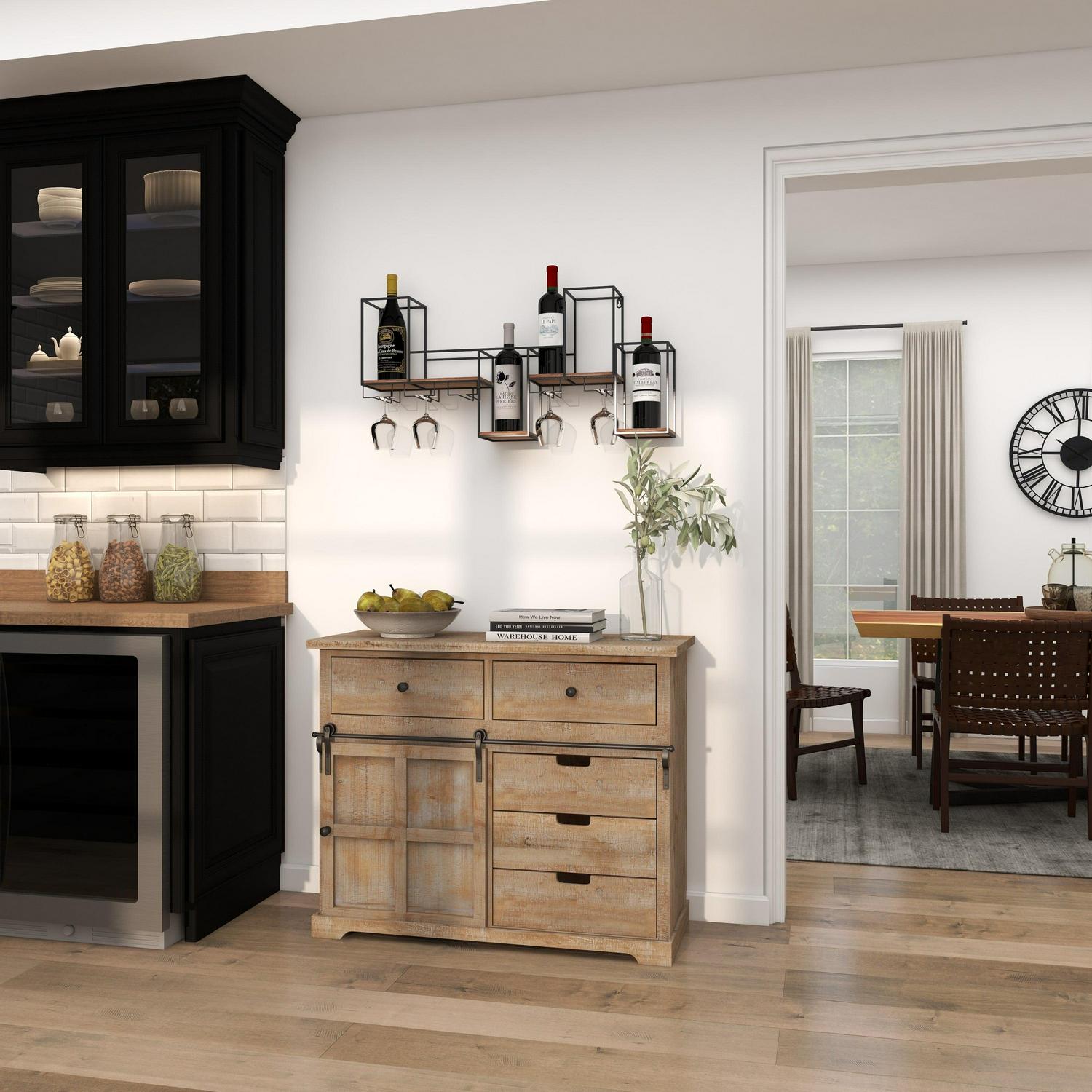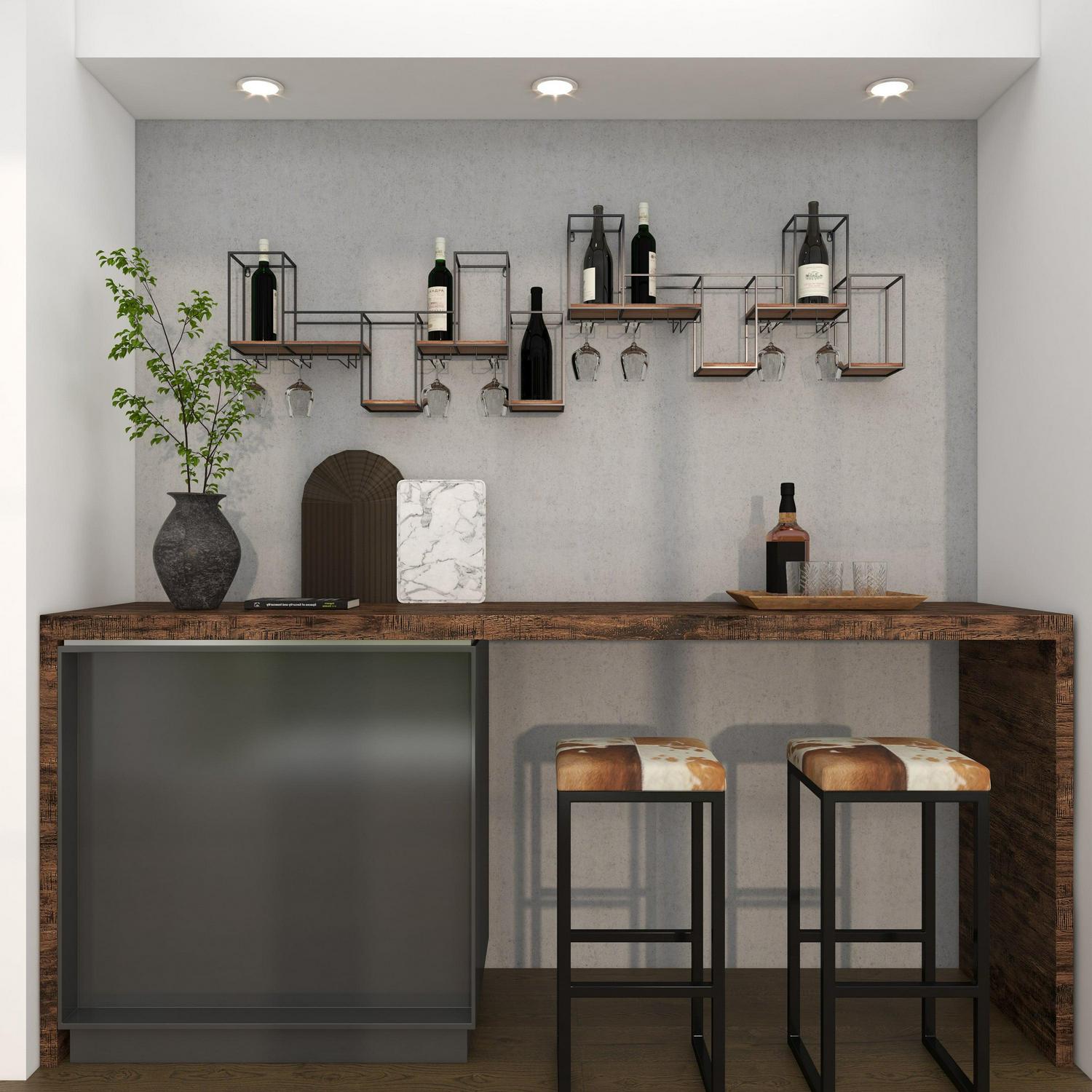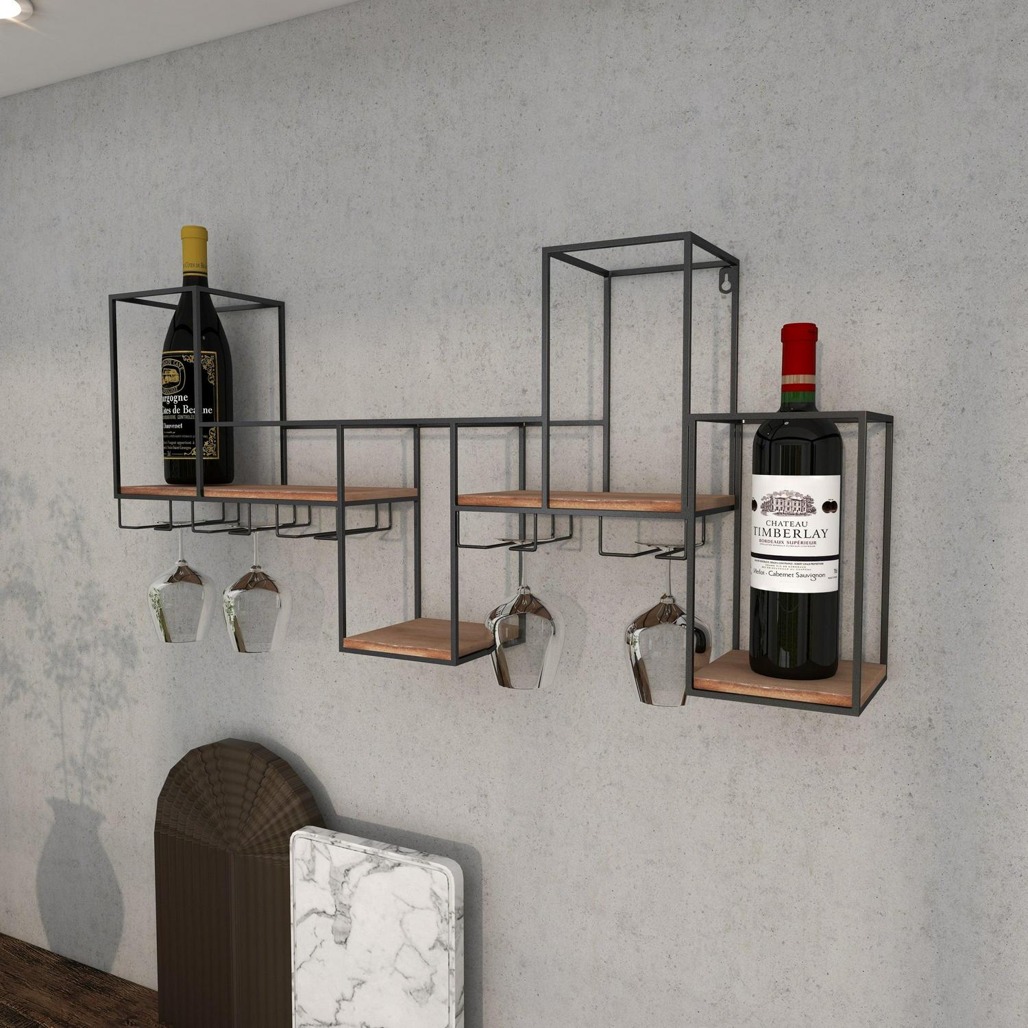 – This irregularly shaped wine shelf serves as a rack for bottles, glasses, accessories, and other table displays
