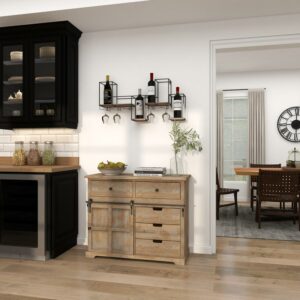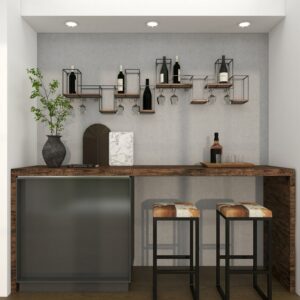 – DecMode 36″ x 16″ Black Metal Geometric 7 Bottles Wall Wine Rack with 5 Glass Holder Slots, 1-Piece makes a perfect addition to any home