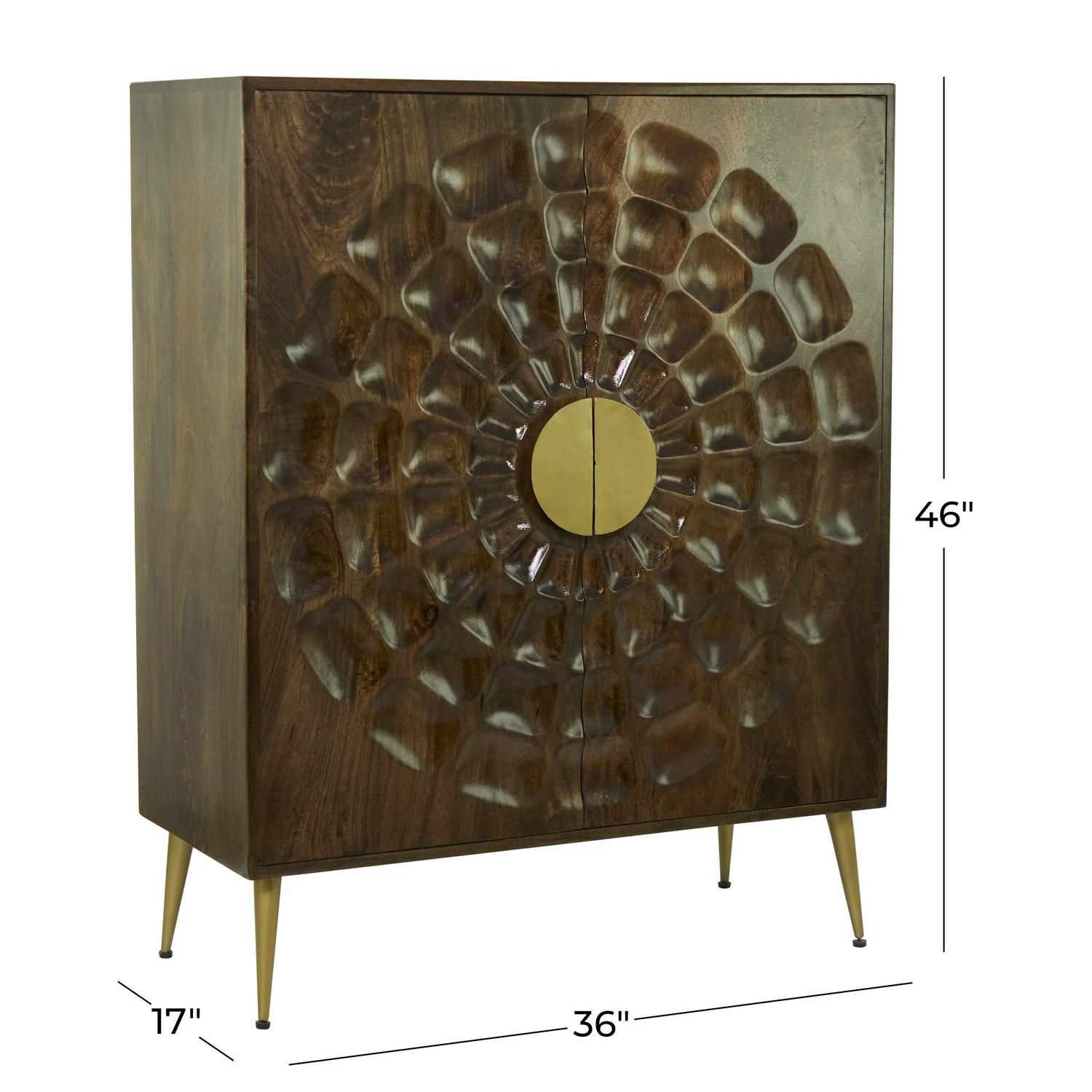 DecMode 36″ x 46″ Brown Wood 1 Shelf and 2 Doors Cabinet, 1-Piece is a unique addition to your stylish home. A practical yet stylish upgrade that instantly elevate the look of your room. Maintain a clutter free zone and stay organize with this chic cabinet. Organize and store your belongings in style with this wooden cabinet to elevate your room corners or hallways. Includes anti-tipping hardware to prevent tipping. The interior divisions of this storage cabinet measures 35″L x 15″W x 17″H and 35″L x 15″W x 18″H. This item ships in 1 carton. Suitable for indoor use only. This item ships fully assembled in one piece. Maximum weight limit is 100 lbs. Made in India. This is a single brown colored storage cabinet. Wood cabinet features a single shelf. Contemporary style.