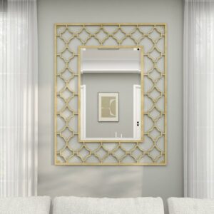– DecMode 38″ x 50″ Gold Quatrefoil Wall Mirror makes a perfect addition to any home