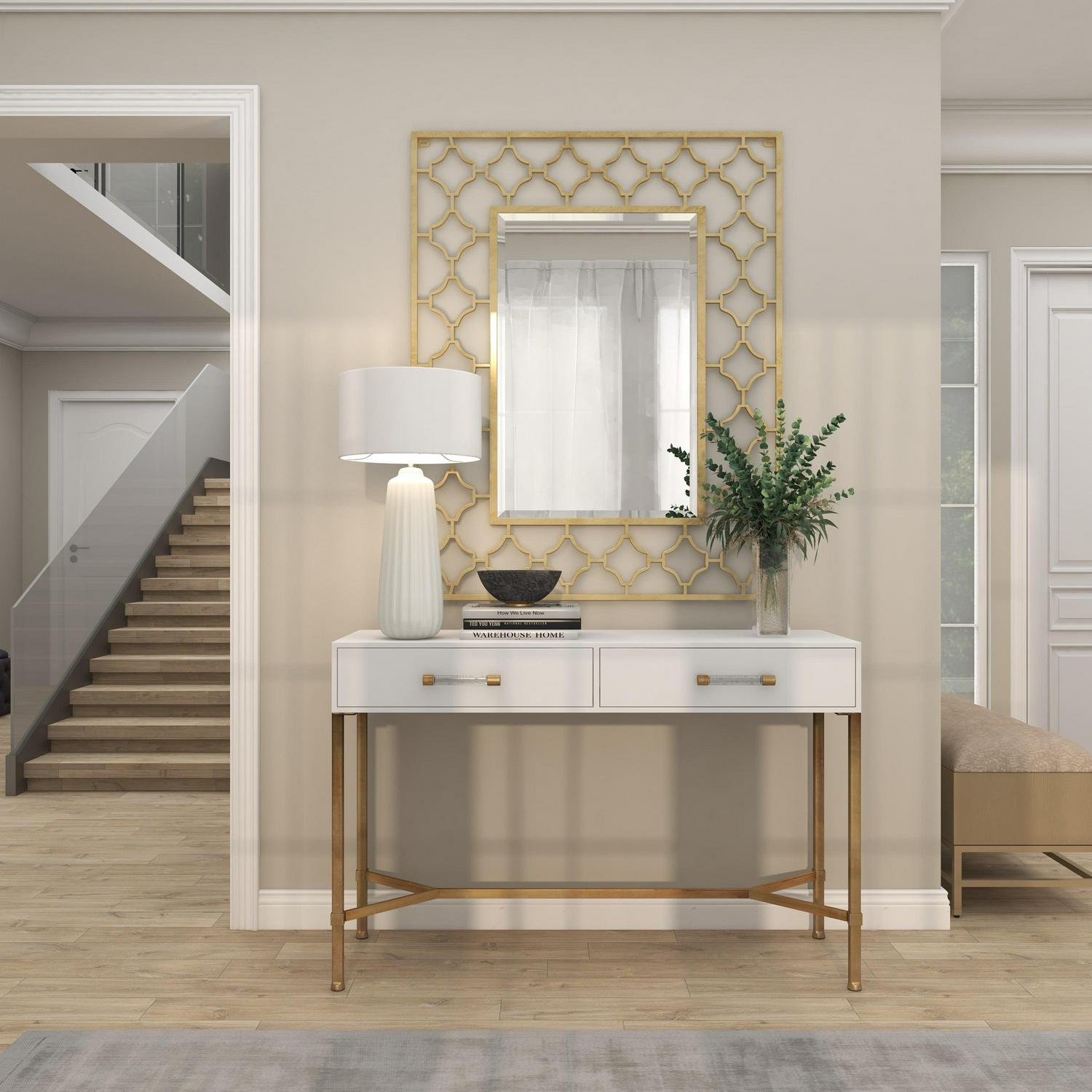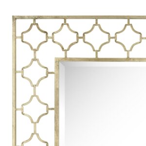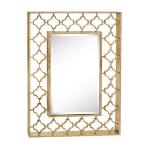 DecMode 38″ x 50″ Gold Quatrefoil Wall Mirror is a unique addition to your stylish home. Hang this long wall mirror over your living room mantel to brighten the space. This item ships in 1 carton. Contains an inner gold band around the rectangular glass mirror. Can be hung vertically using the keyholes; nails and screws not included. Suitable for indoor use only. This item ships fully assembled in one piece. This is a single gold colored entryway mirror. Glam style.