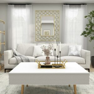 – This rectangular wall mirror has a gold finish that pairs well with glam-style decor