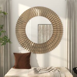 – Large mirror for wall features a 3-layer wavy metal frame exterior design and a round mirror shape