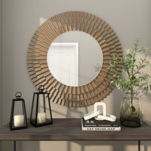 - Round wall mirror is made of durable iron, MDF wood, and glass mirror materials