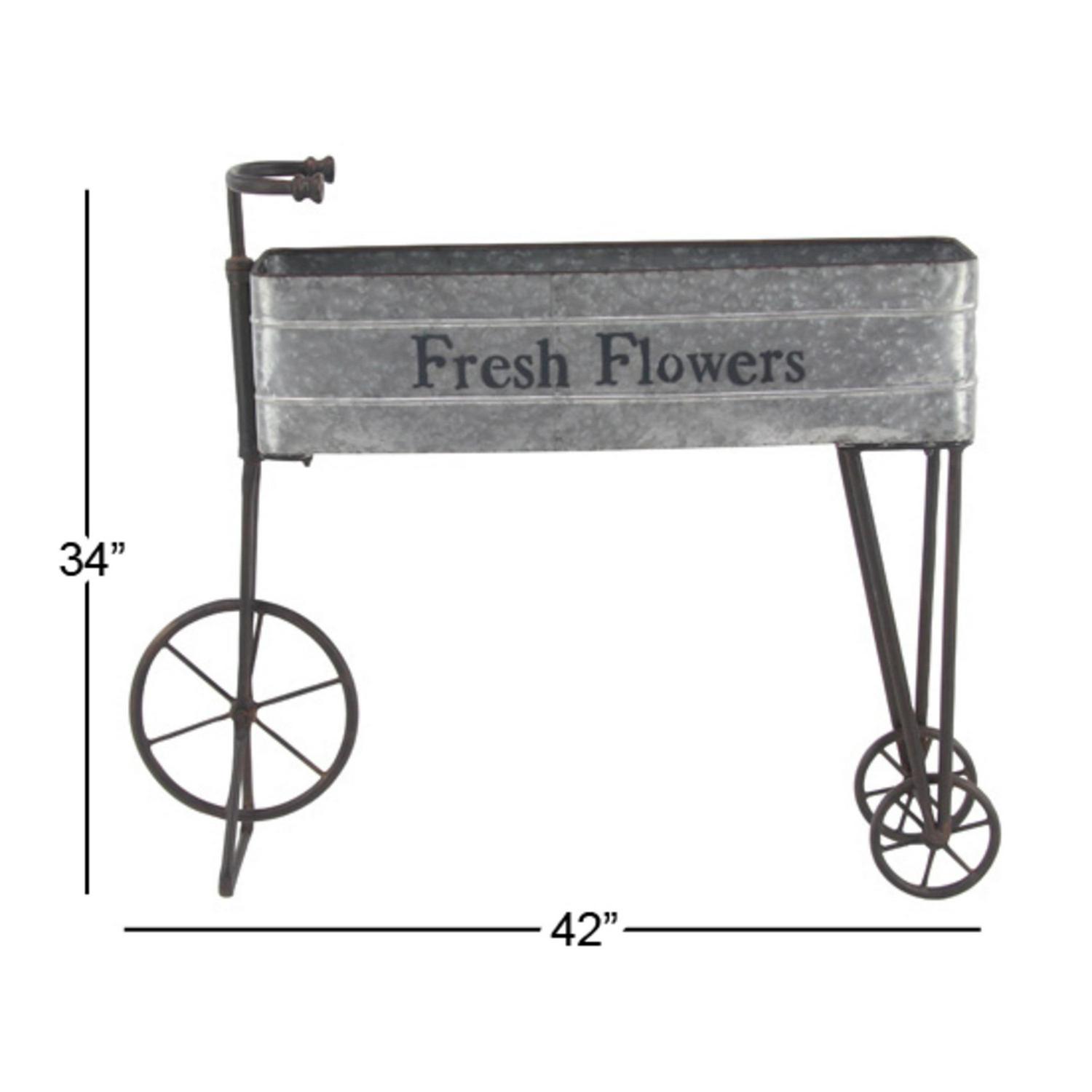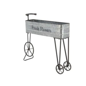 DecMode 42″ x 9″ x 34″ Gray Metal Indoor Outdoor Wagon Plantstand is a unique addition to your stylish home. This creatively shaped planter stand lets you place it indoors or outdoors and looks beautiful filled with bright-colored potted cacti and flowers. This item ships in 1 carton. Suitable for indoor and outdoor use. This item ships fully assembled in one piece. Maximum weight limit is 20 lbs. This is a single gray colored plant holder. Farmhouse style. Features a “Fresh Flower” typography.