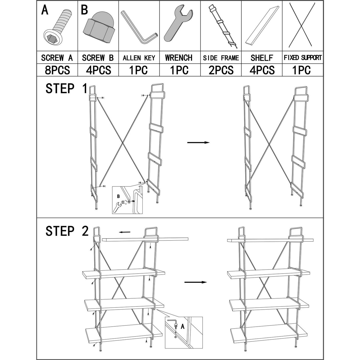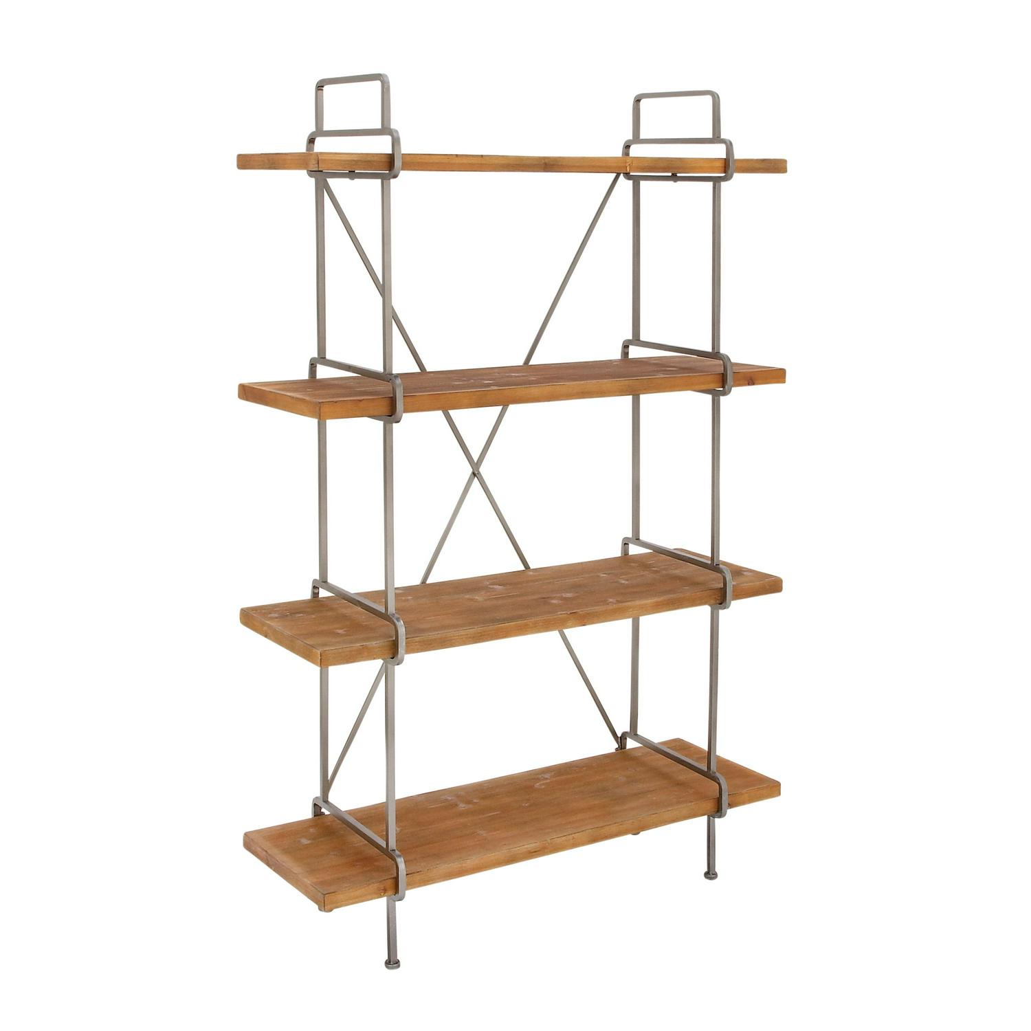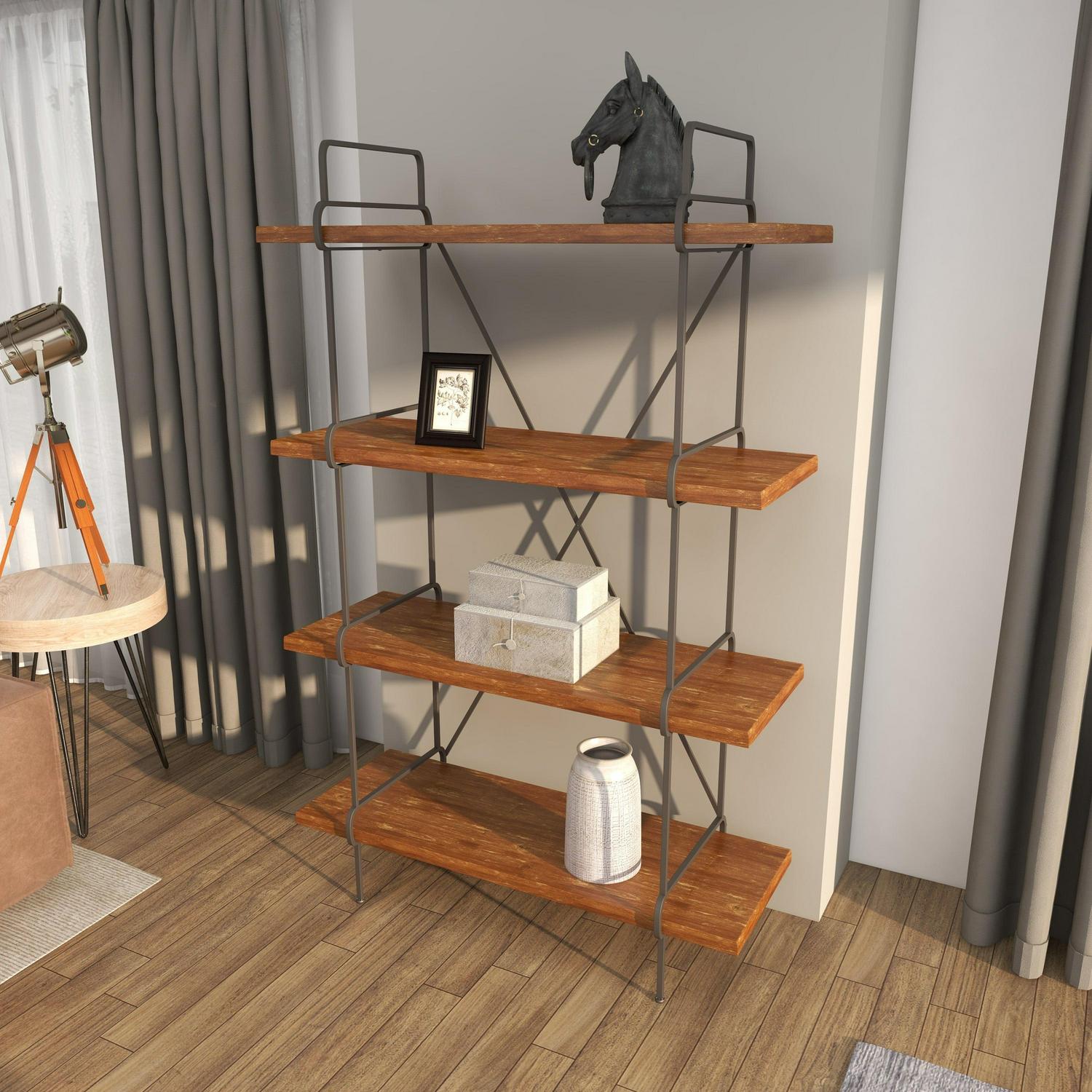 – This 4-tier shelf features rectangular shelves an “X” figure formed by the metal support bars at the back