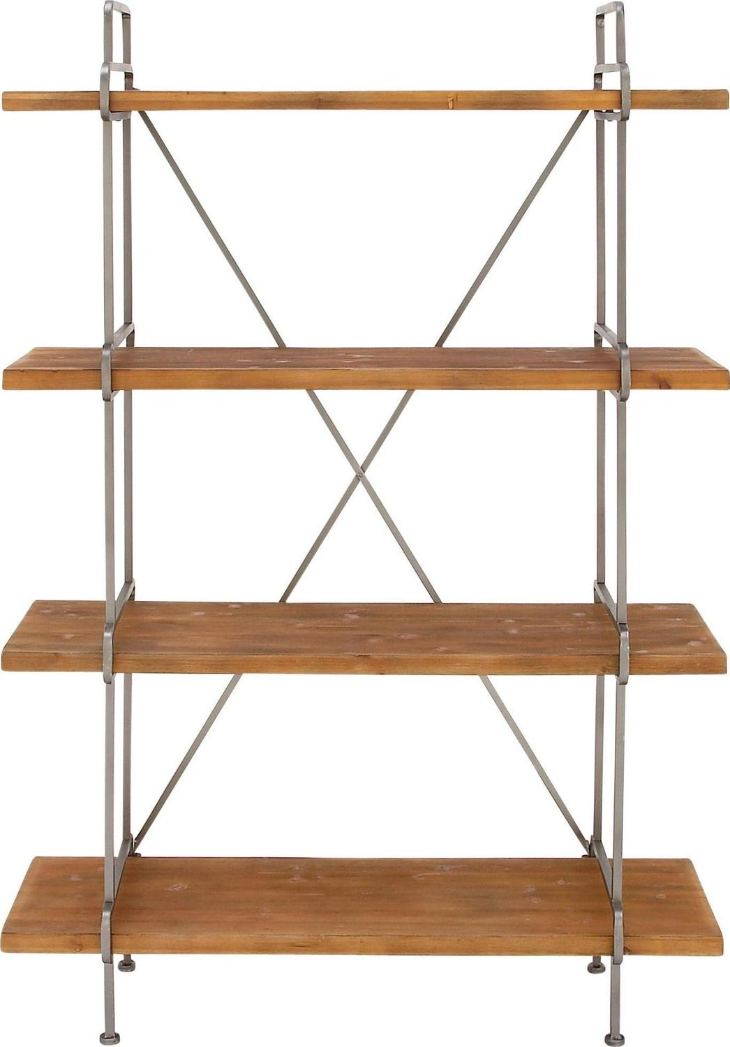 - Tall storage shelf is crafted with solid wood and metal material