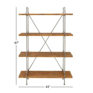 DecMode 43″ x 67″ Dark Brown Wood 4-Tier Shelving Unit, 1-Piece is a unique addition to your stylish home. Create a rustic display with this tall shelving unit with hardcover books, organic vases, large beaded garlands and potted plants. Designed with felt or rubber stoppers at the base that prevent scratching furniture and table tops, as well as sliding around. This item ships in 1 carton. Suitable for indoor use only. Some assembly required. Maximum weight limit is 30 lbs. This is a single dark brown colored display shelf. Fir shelving unit features 4 shelves. Industrial style.
