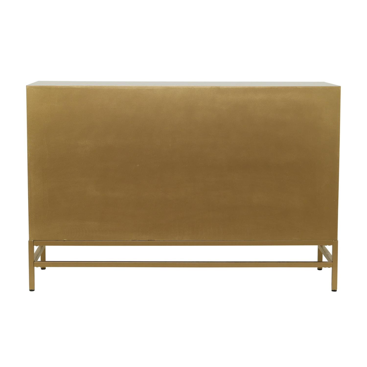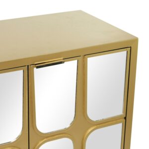 – Metallic gold finish complements the reflective look of the mirrors on this storage cabinet