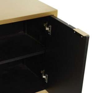 – The wood is carved to create a rectangular cabinet with beautiful inlaid mirror panels with gold metal borders that add appeal to your interior design