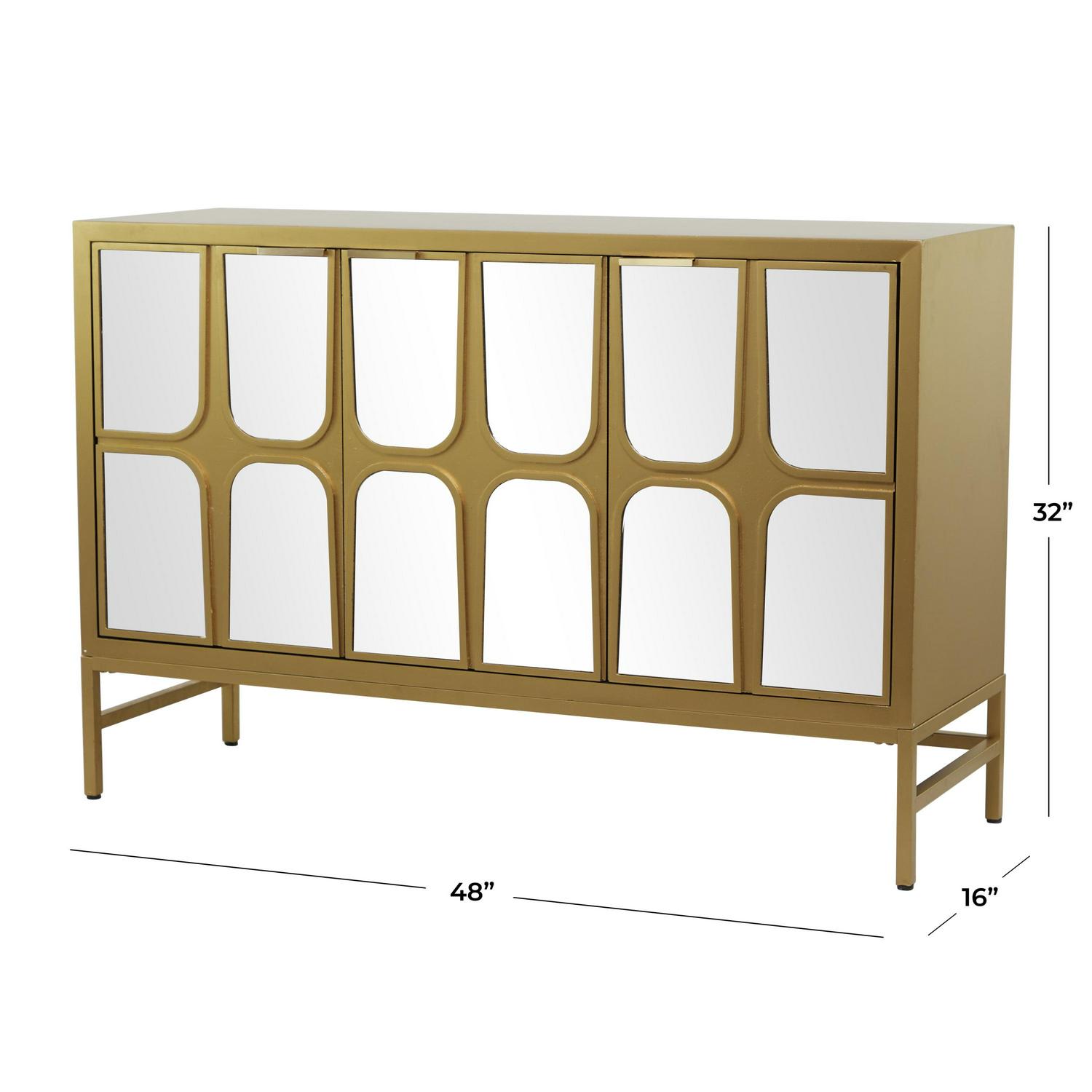 – DecMode 48″ x 32″ Gold Wooden 1 Shelf and 3 Doors Cabinet with Mirrored Front, 1-Piece makes a perfect addition to any home