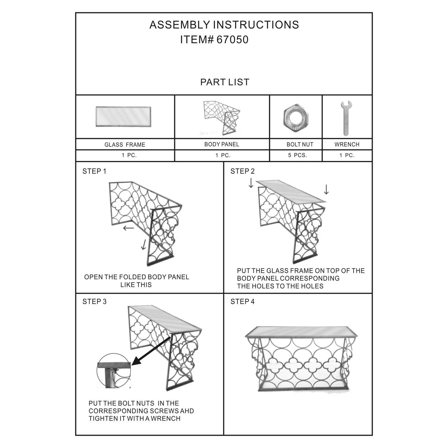 DecMode 49″ x 31″ Gold Metal Quatrefoil Design Geometric Console Table with Mirrored Glass Top, 1-Piece is a unique addition to your stylish home. Bring a finishing touch to your home with an inviting appeal with this console table. A sturdy and long lasting construction for a years of enjoyment. Give your home a luxurious feel with this stunning gold metal with glass top side table that will compliment other sleek metal furniture and bold color background. This item ships in 1 carton. Suitable for indoor use only. Some assembly required. Maximum weight limit is 100 lbs. This is a single gold colored entryway table. Glam style.