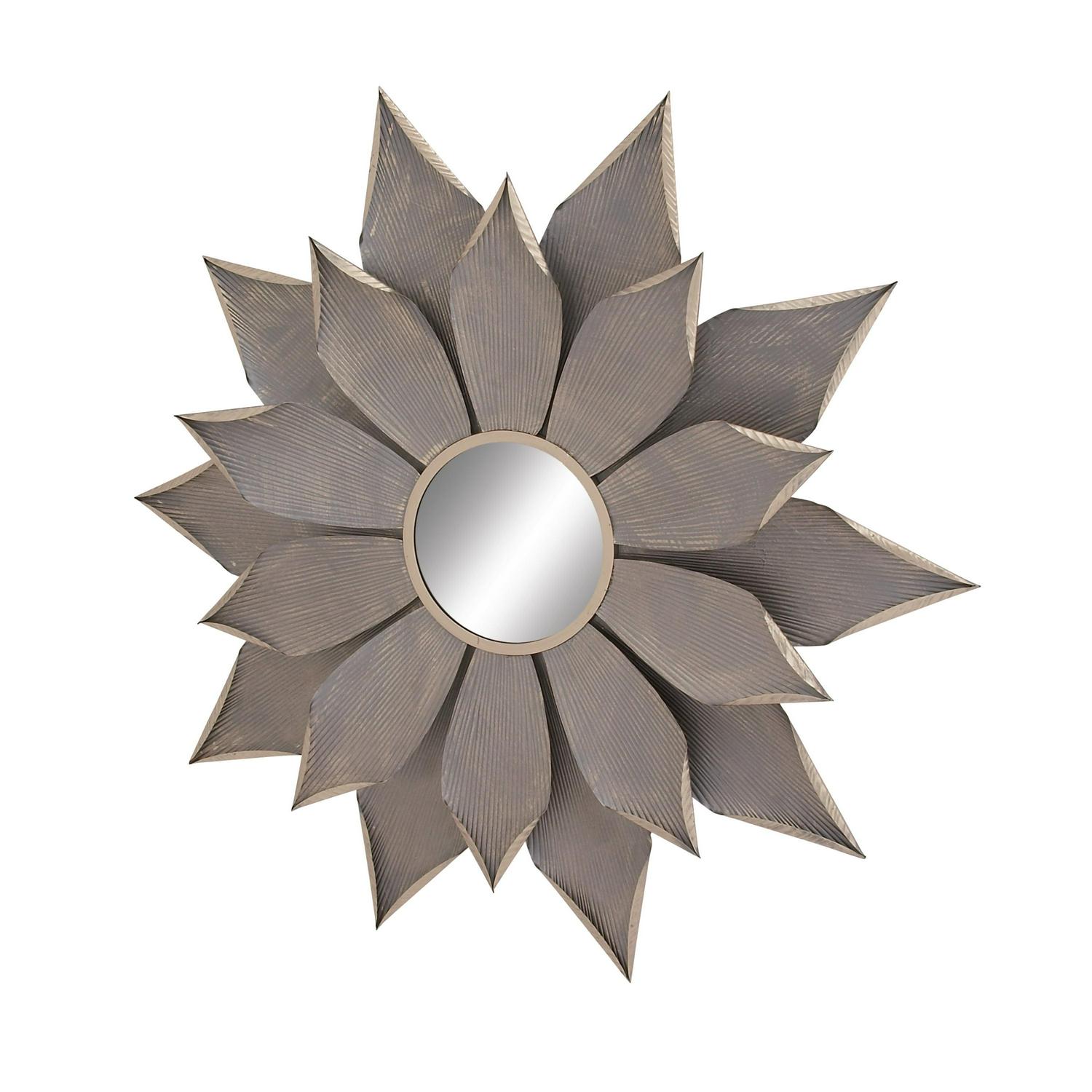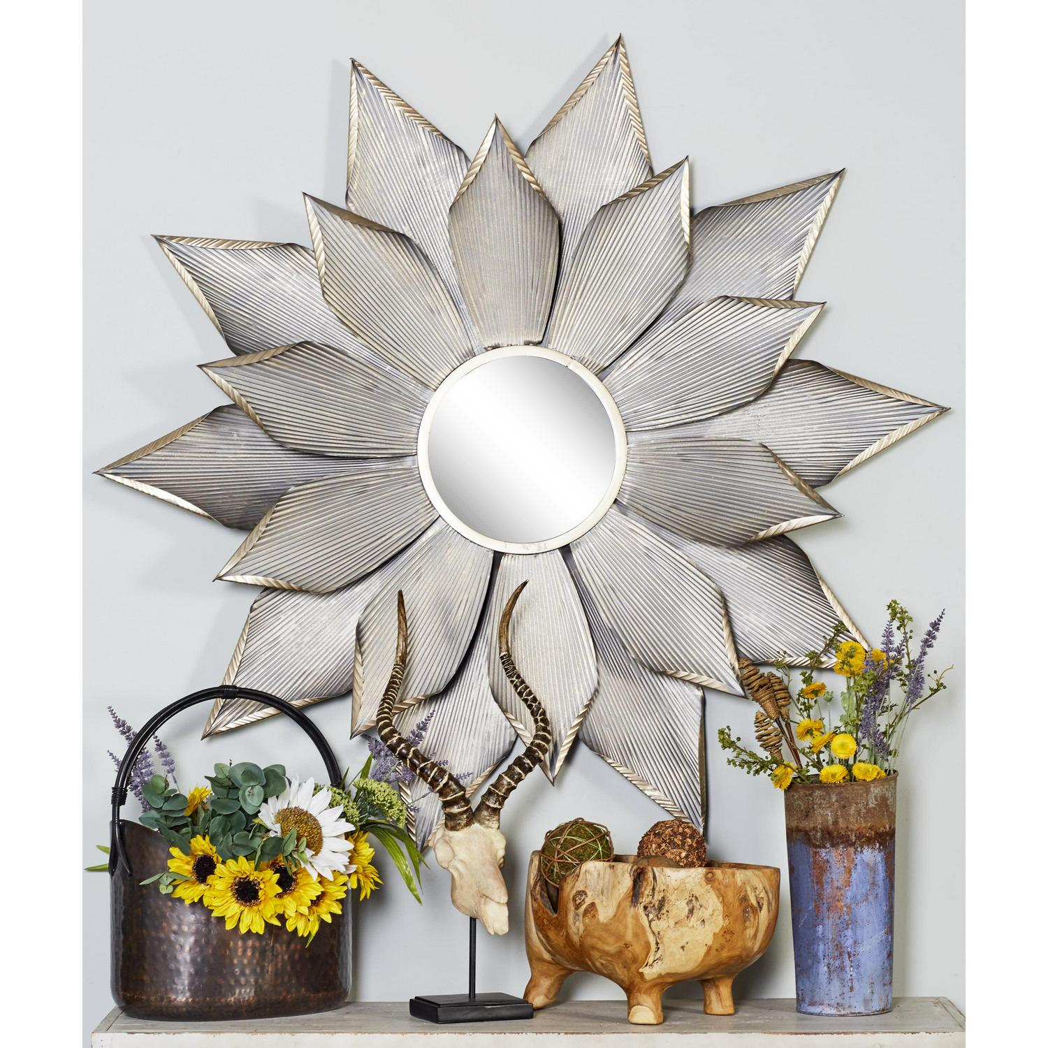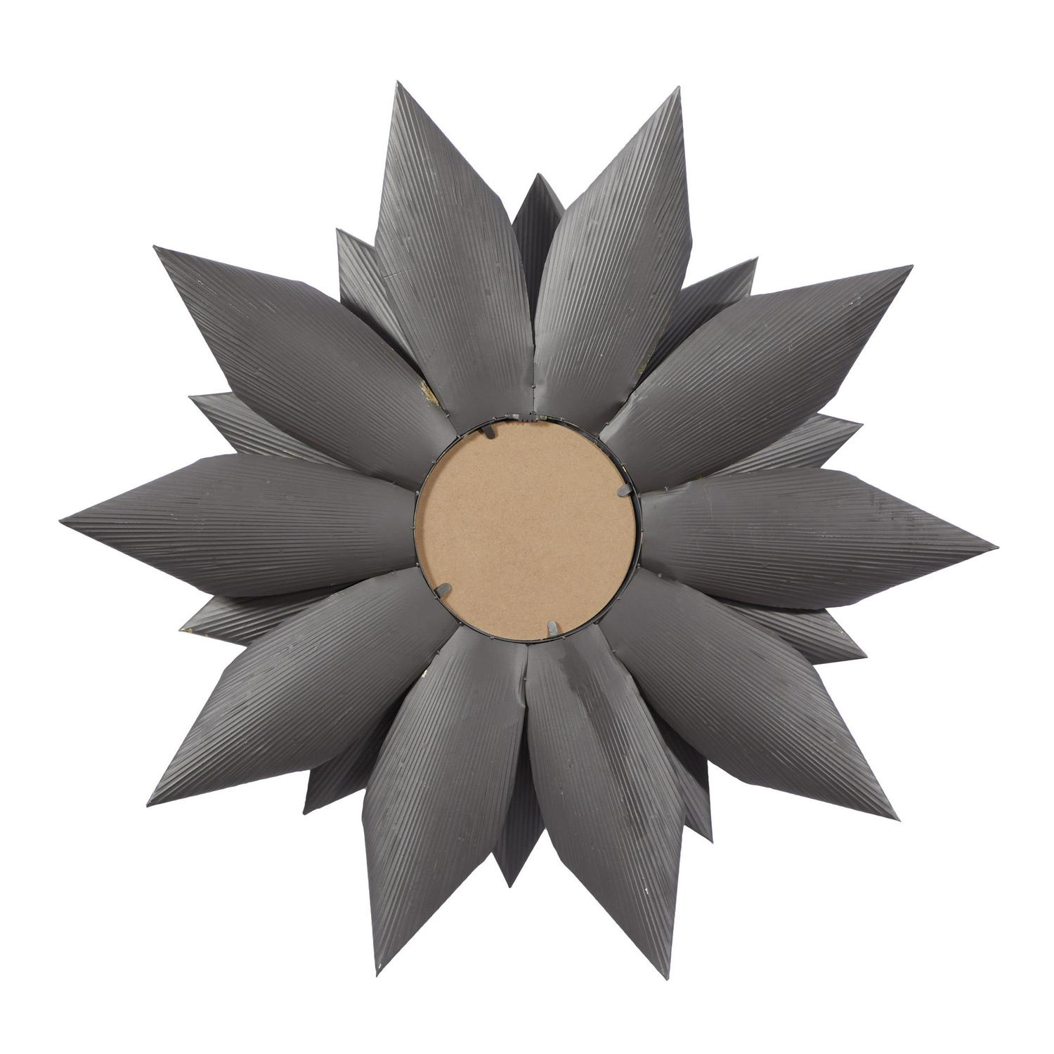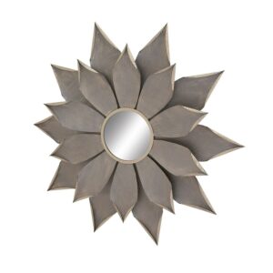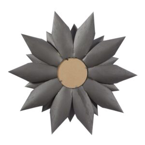 – This decorative mirror boasts a large floral silhouette with overlapping petals