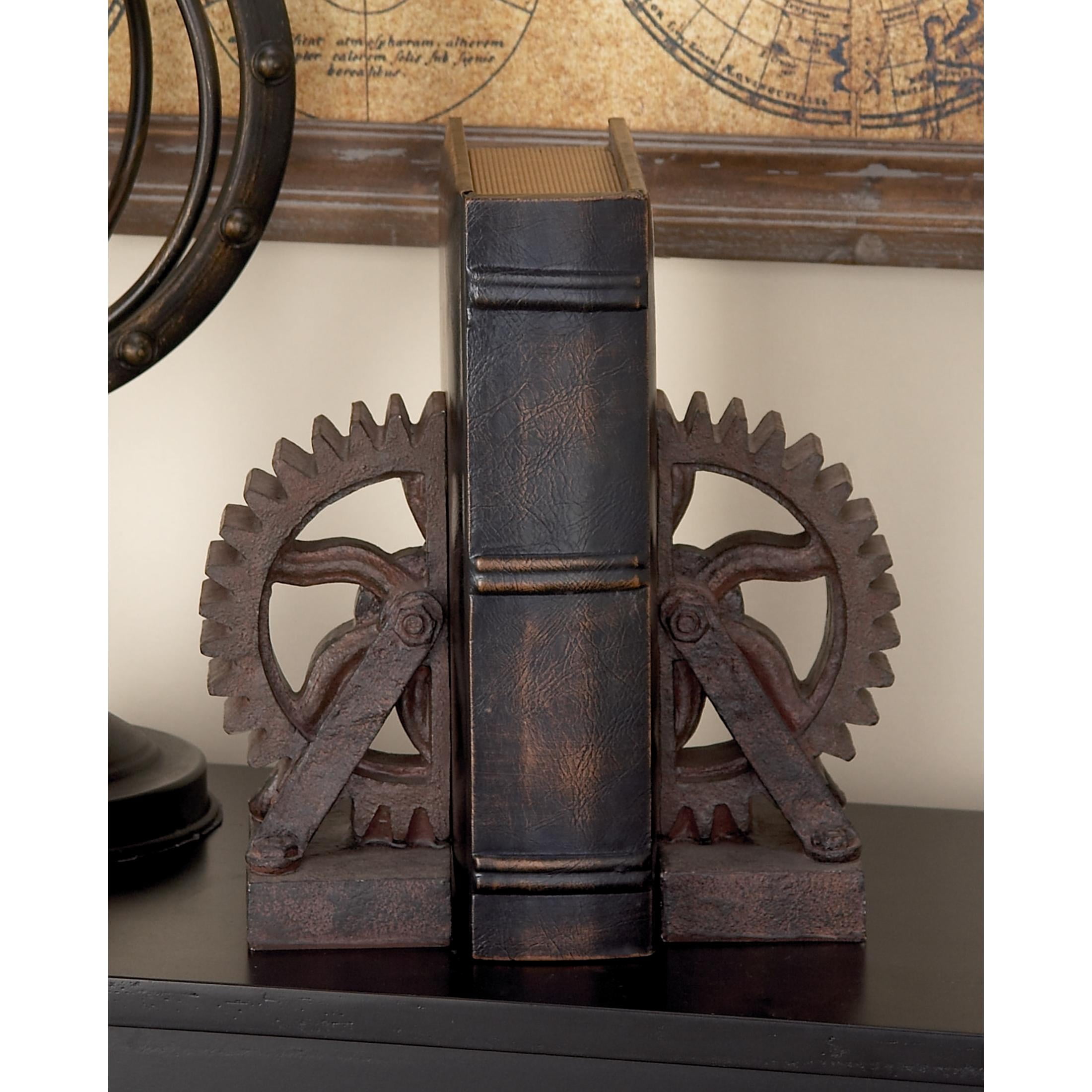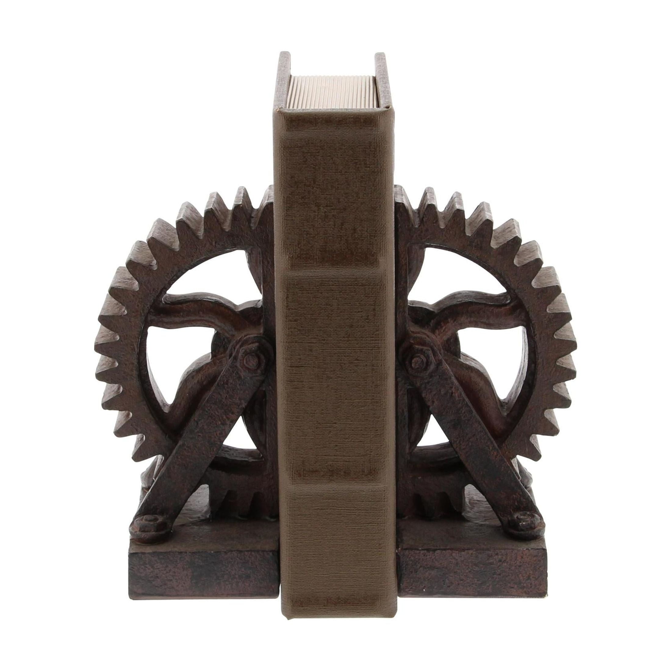 DecMode 5″ Gear Brown Polystone Bookends (Set of 2)