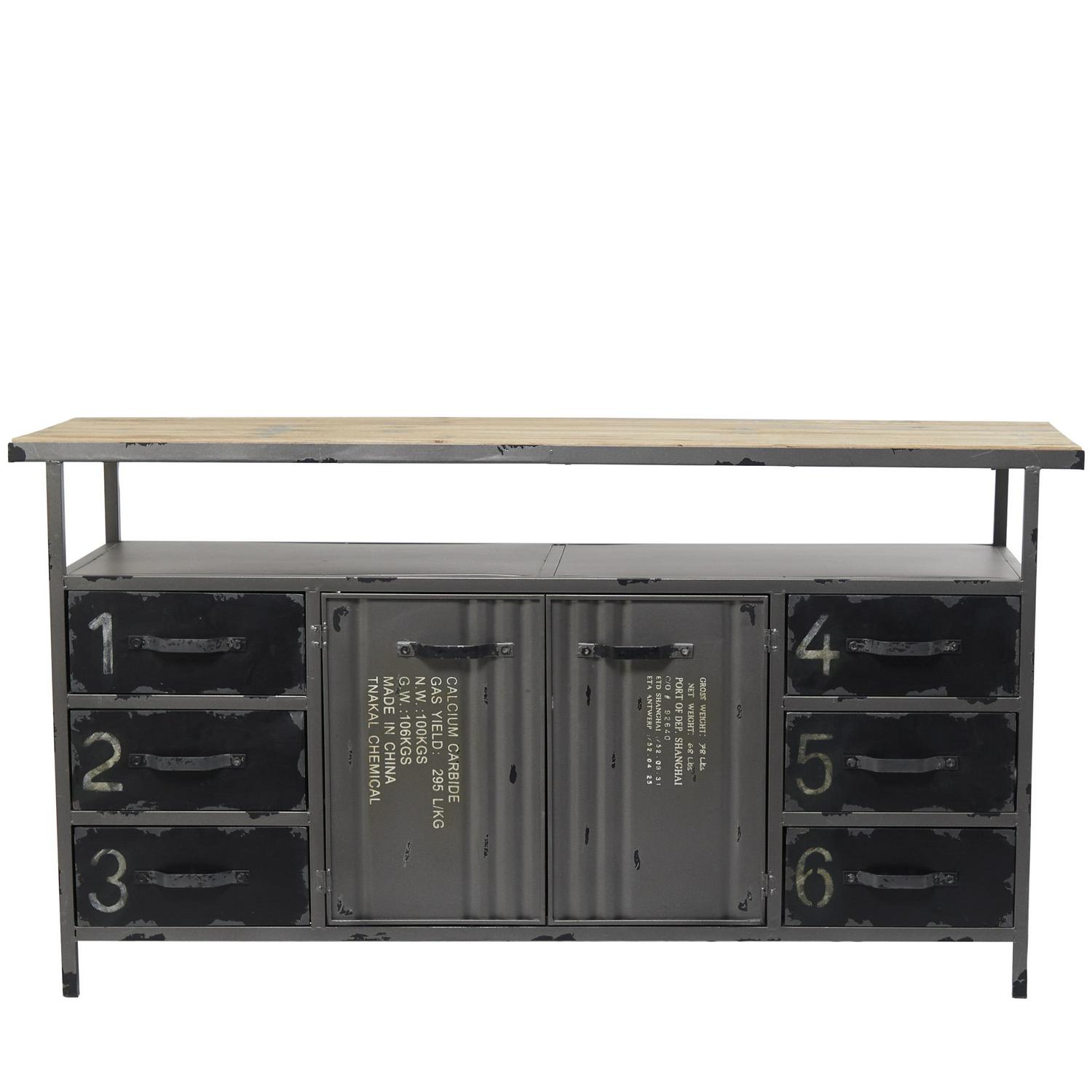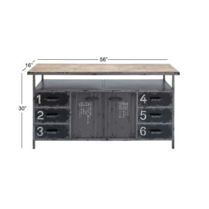 DecMode 56 x 30 Gray Metal Army Surplus Style 6 Drawers 2 Shelves and 2 Doors Buffet with Numbers and Text, 1-Piece