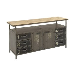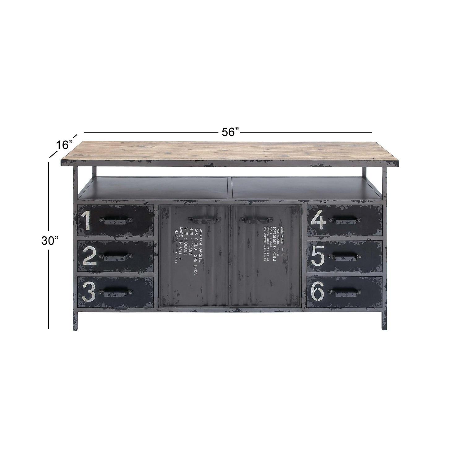 – DecMode 56″ x 30″ Gray Metal Army Surplus Style 6 Drawers 2 Shelves and 2 Doors Buffet with Numbers and Text, 1-Piece makes a perfect addition to any home