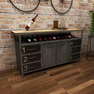 – Industrial storage unit features a sturdy construction of iron and fir wood