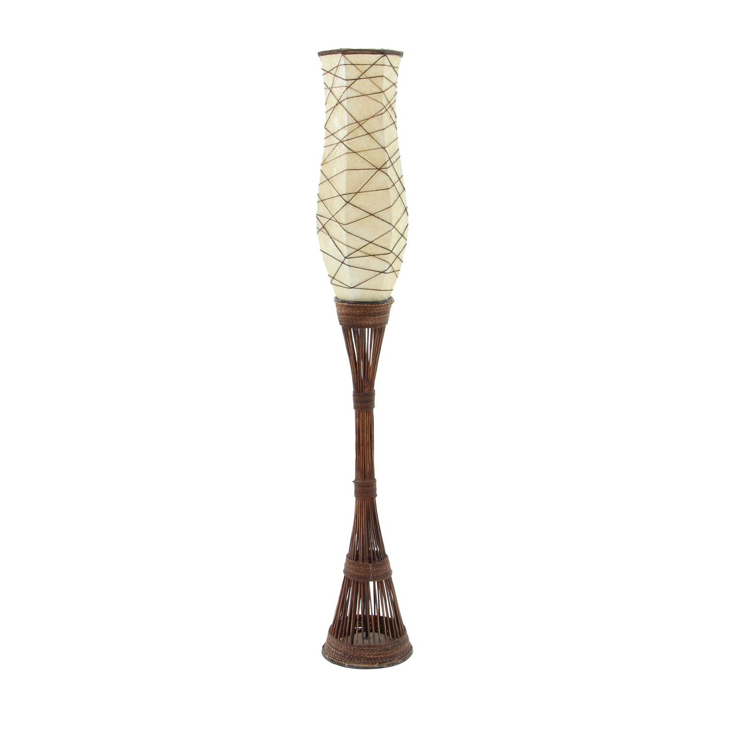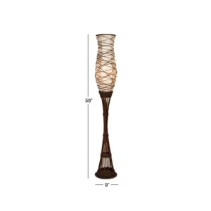 DecMode 59″ Brown Floor Lamp with Cream Paper Shade is a unique addition to your stylish home. Brighten up any room to create a warming atmosphere for you and your guests with this chic floor lamp. Make a statement with this unique floor lamp on any surface space for a balanced look. Rustic themed floor lamp which fits coastal, Asian or modern rustic interior. Requires 1 60W Type A E26/Medium (Standard) bulb. This item ships in 1 carton. Comes with a 97″ cord length. A nighttime fixture carries a tie-dye-like appearance. Suitable for indoor use only. This item ships fully assembled in one piece. Floor lamp comes with a cream novelty shaped shade that measures 10 x 10 x 24 inches. Includes a foot step switch. Made in Phillipines. This is a single brown colored standing tall lamp. Traditional style.