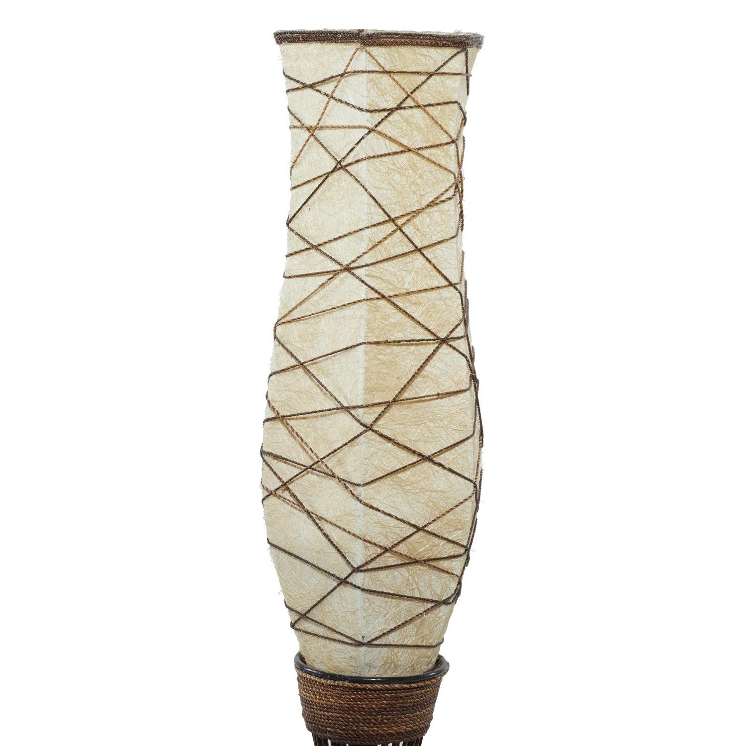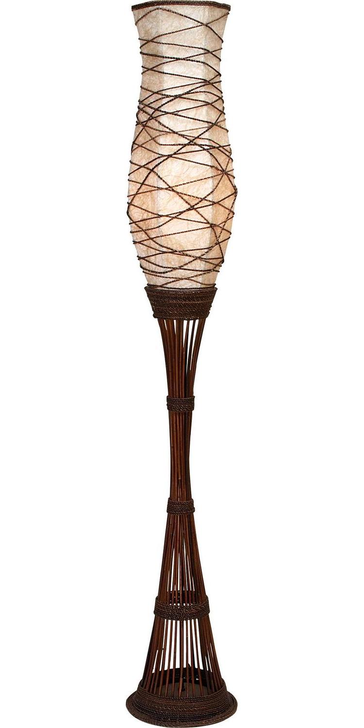 – A rustic themed floor lamp in beige finish torch lamp shade, rope decorative pieces and stylish bamboo stick base