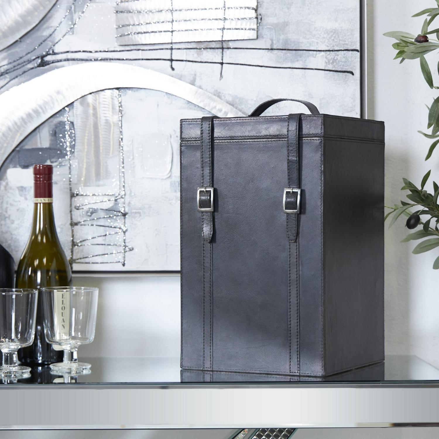 – DecMode 9″ x 16″ Dark Blue Leather 4 Bottle Wine Holder with Carrying Handle, 1-Piece makes a perfect addition to any home