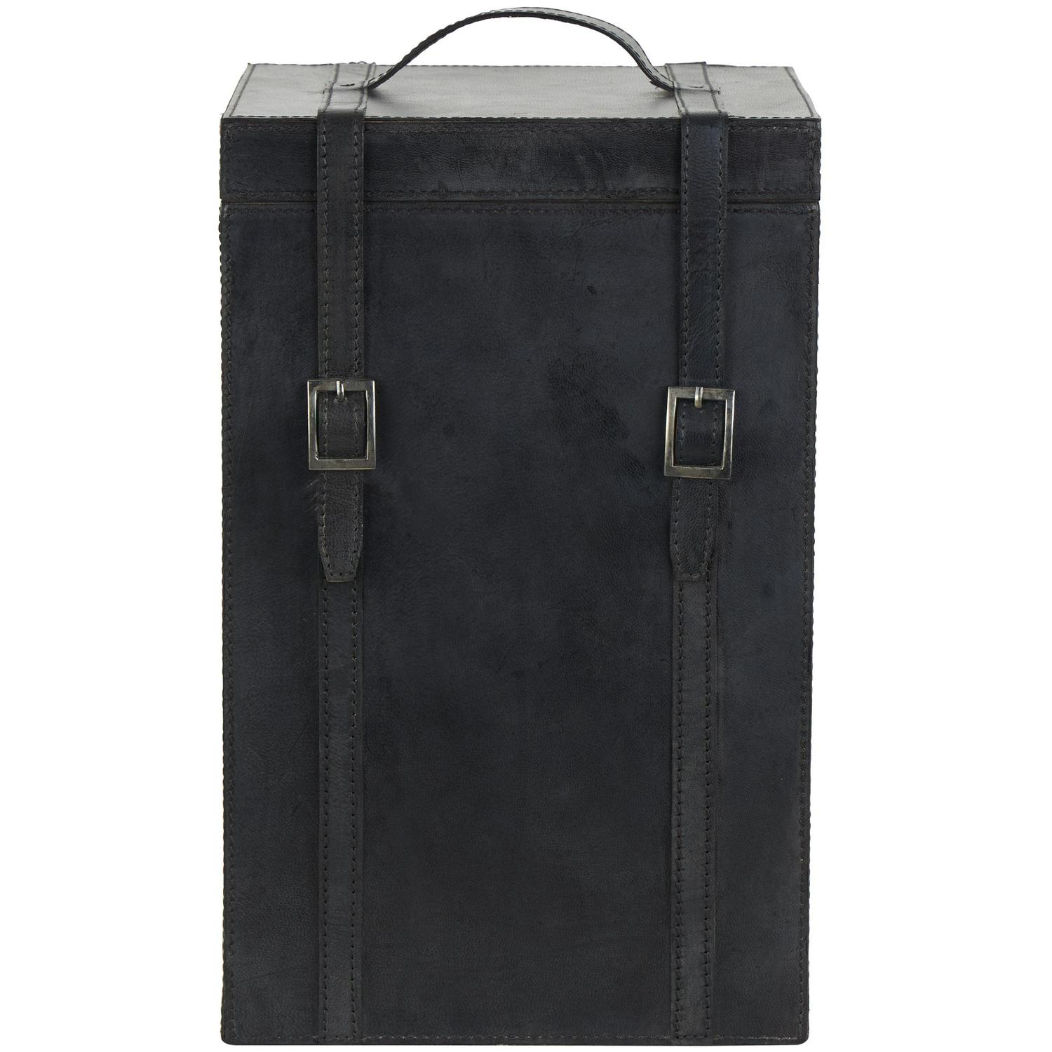 – Dark blue finish highlights this leather wine holder