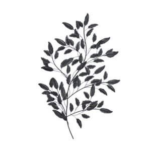 – This metal wall sculpture accentuates a bough of leaves ant textured pattern