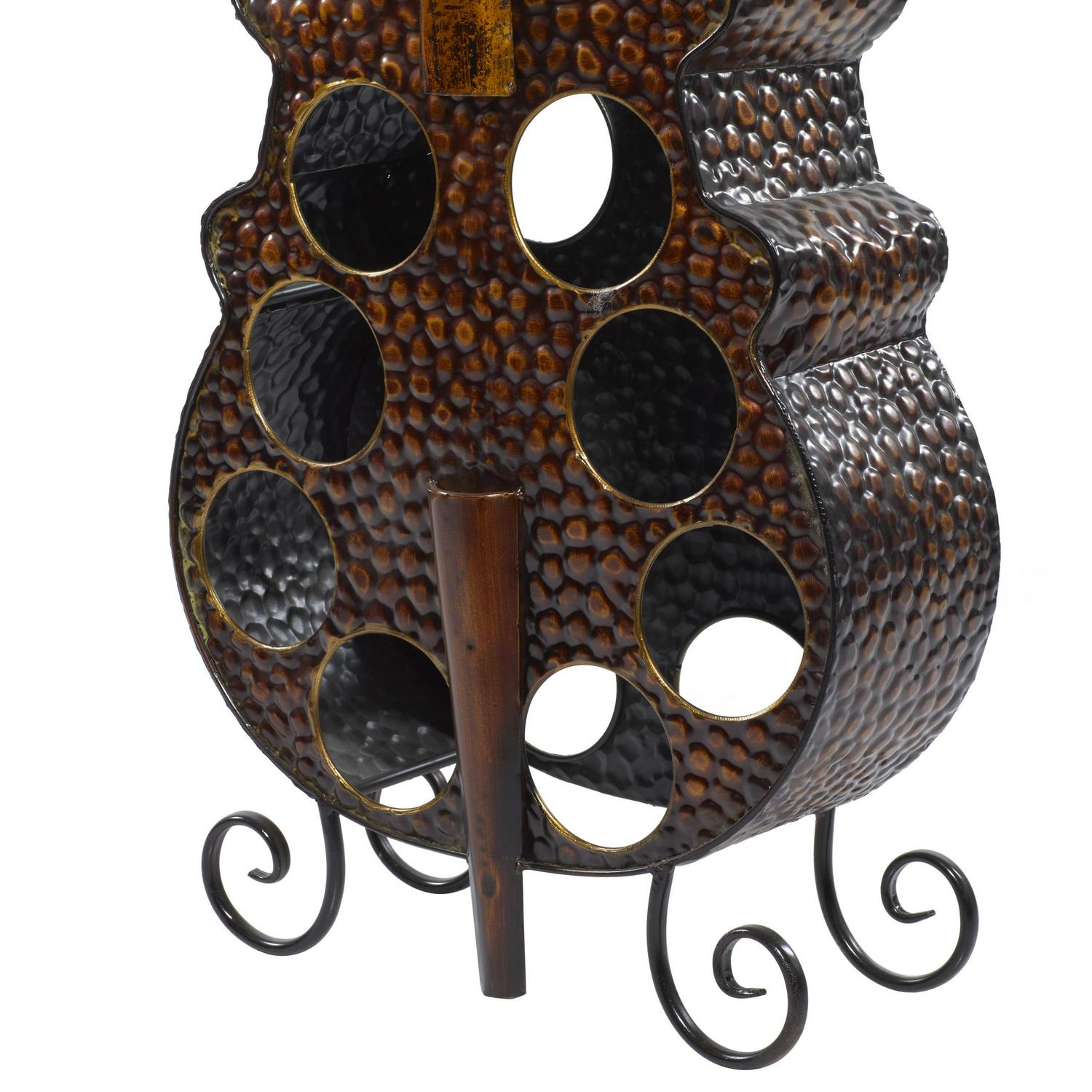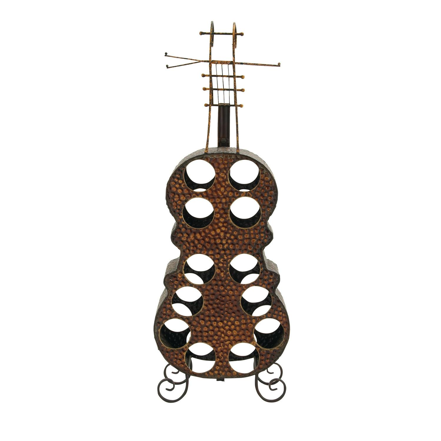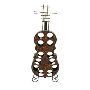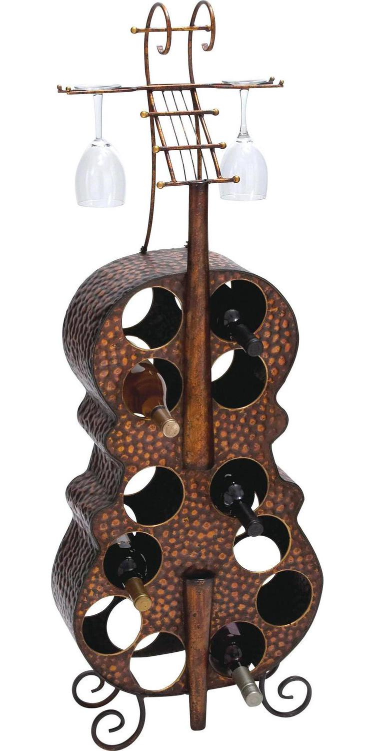 – This wine rack features 12 wine bottle slots and wine glass holders in a cello figure design for a classy and jazzy time