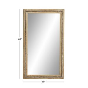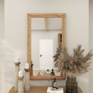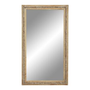 DecMode Brown Bohemian Wood Rectangular Wall Mirror, 28 W x 48 H with Carved Beads Detail