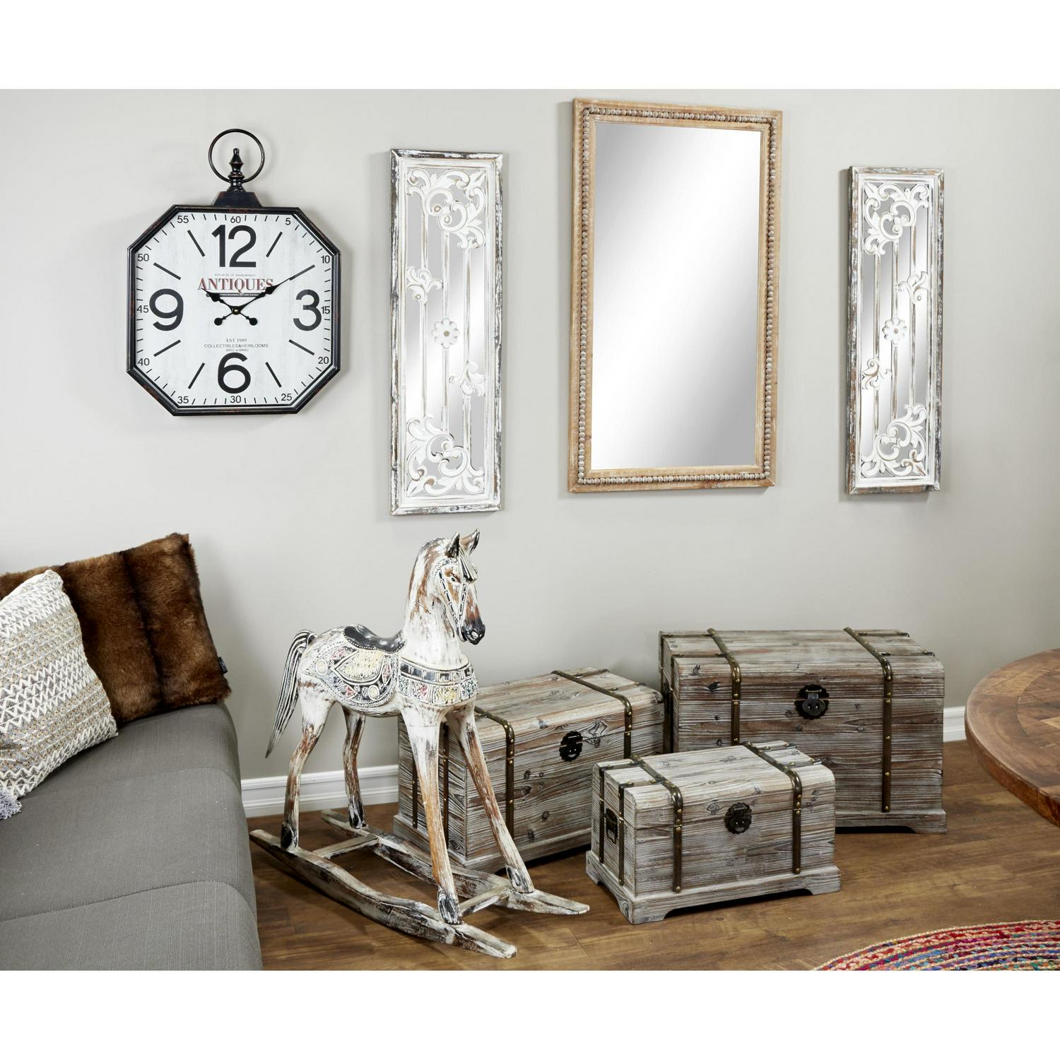 – DecMode 28″ x 48″ Light Brown Distressed Wall Mirror with Beaded Detailing makes a perfect addition to any home
