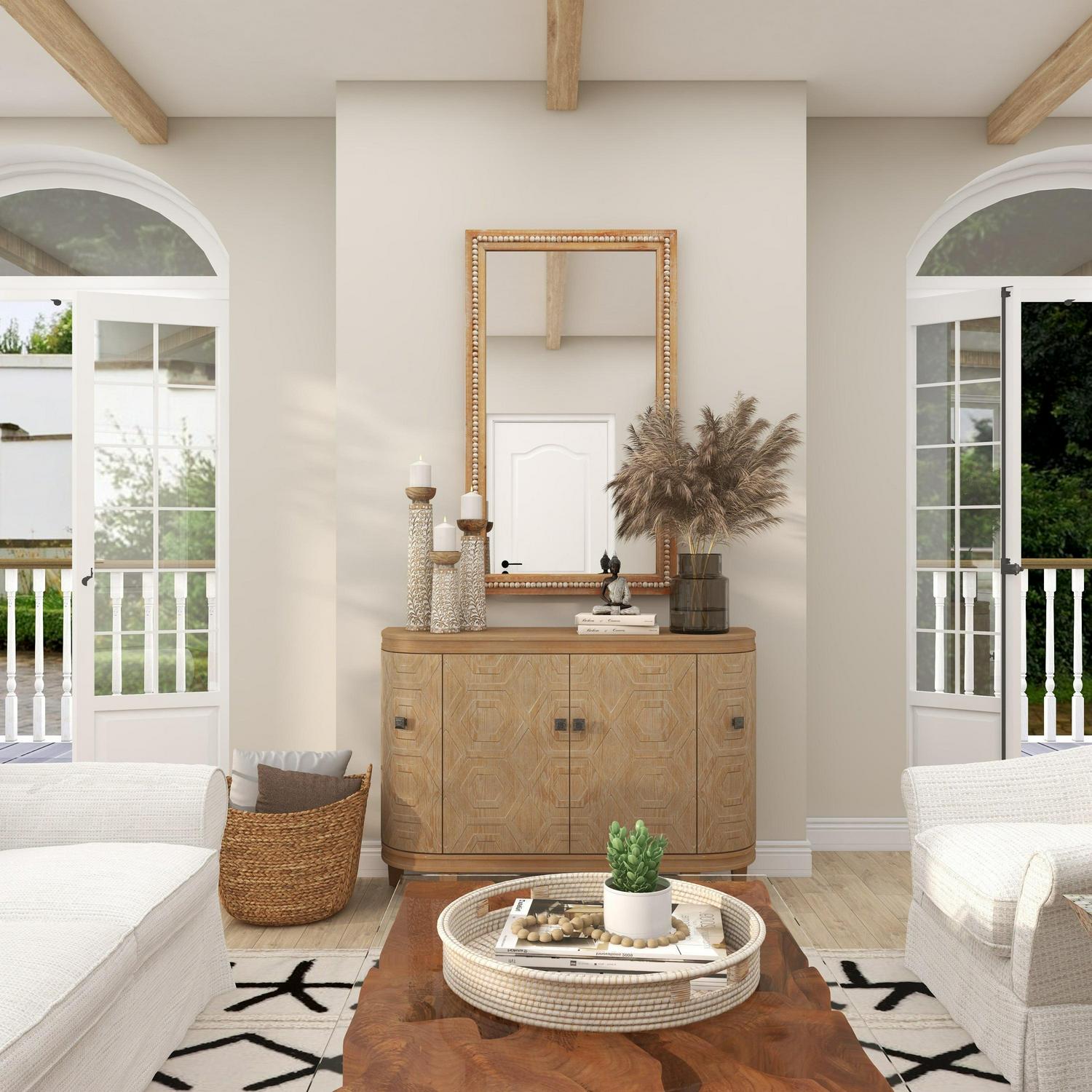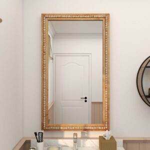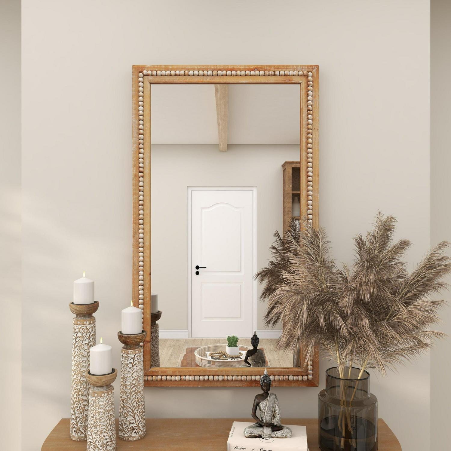 – This decorative rectangle mirror feature an extra large natural mirror design with a traditional wooden bead pattern
