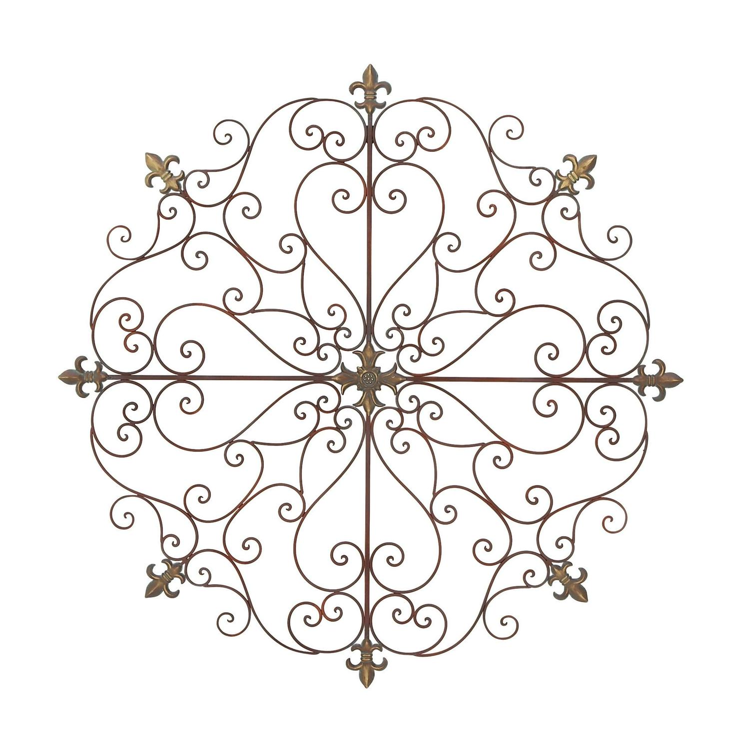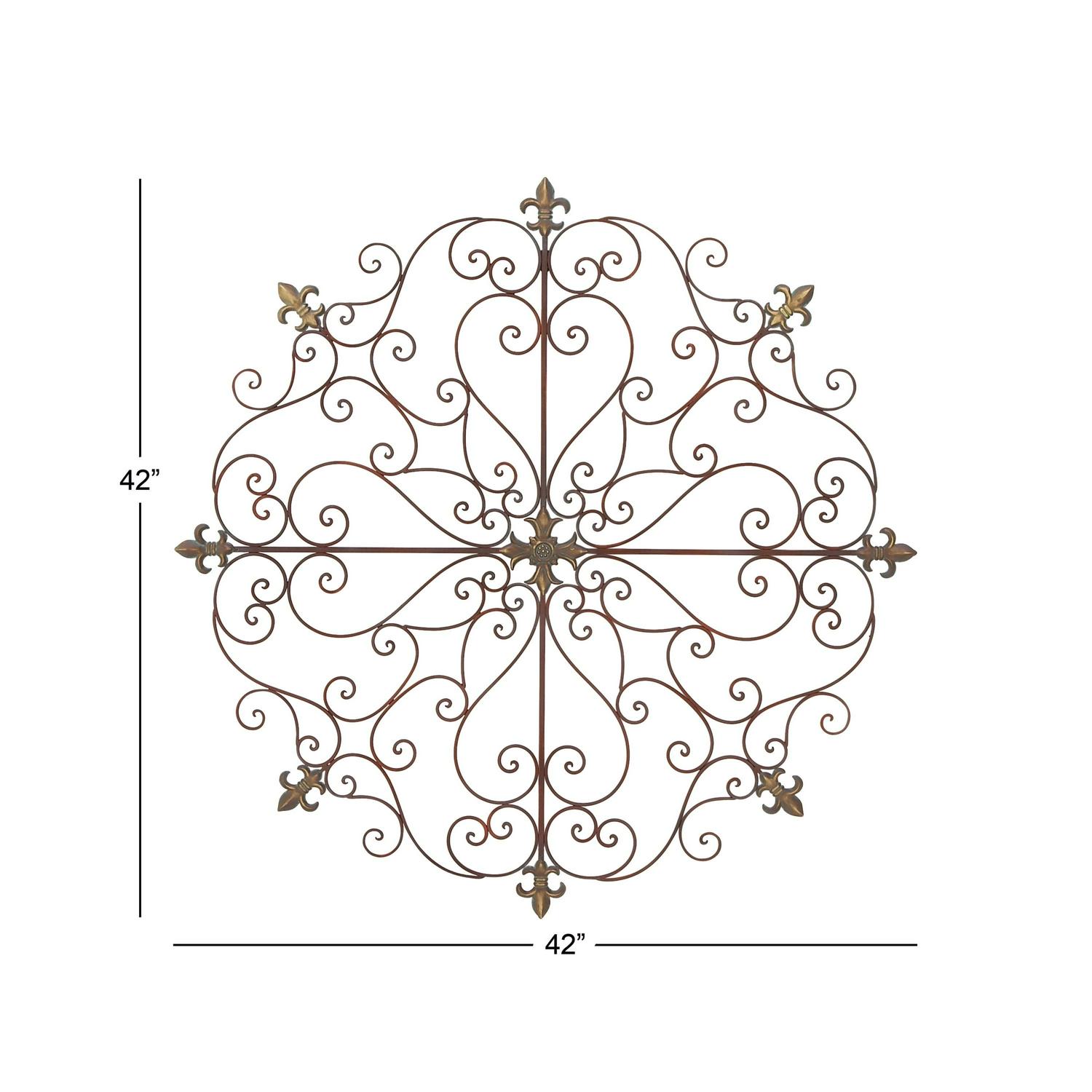 DecMode Brown Metal Scrolled Medallion Fleur De Lis Wall Decor