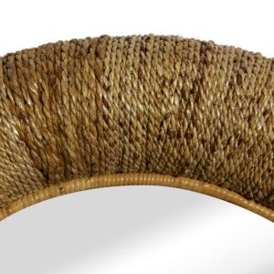 – This wall mirror features a round profile with wound up rattan fibers as frame