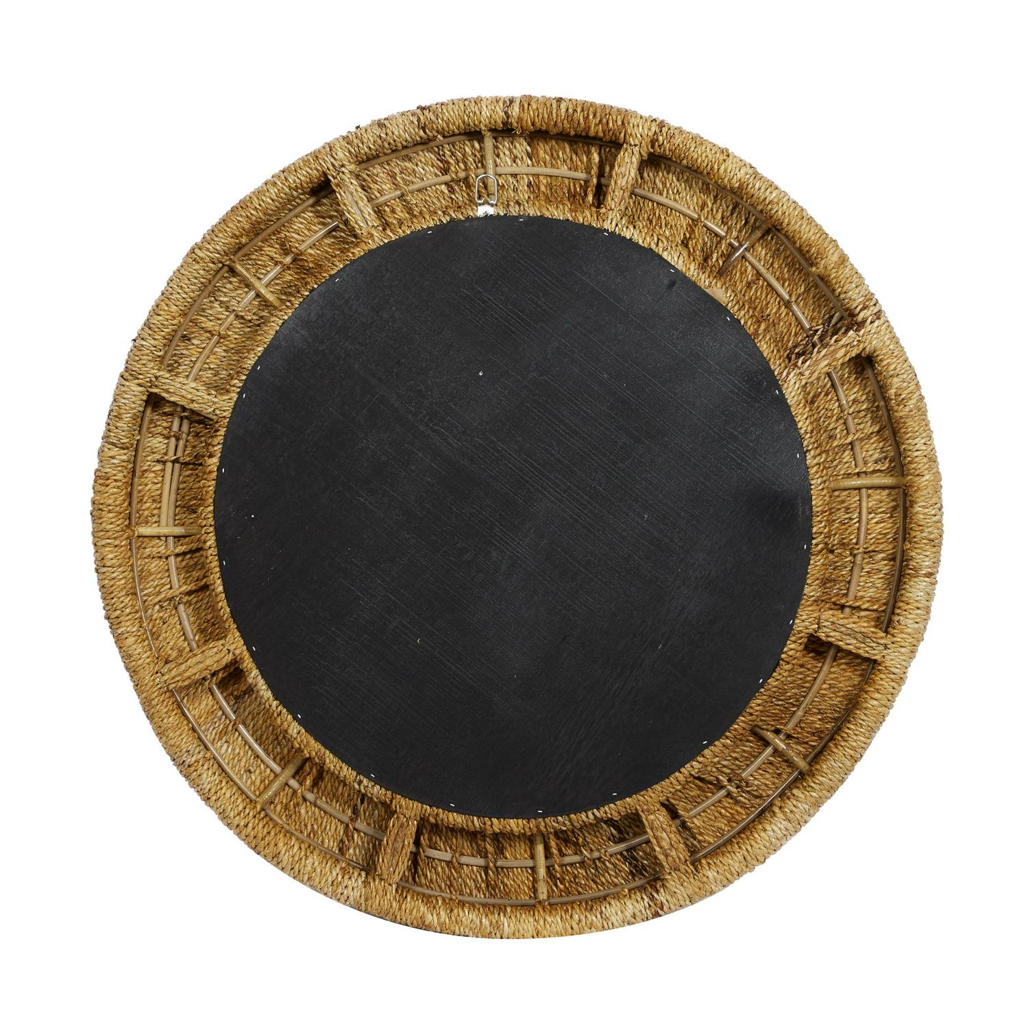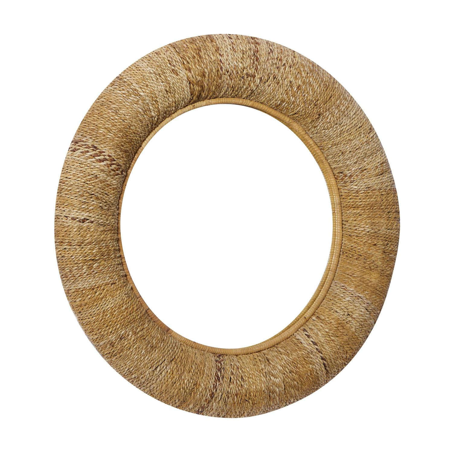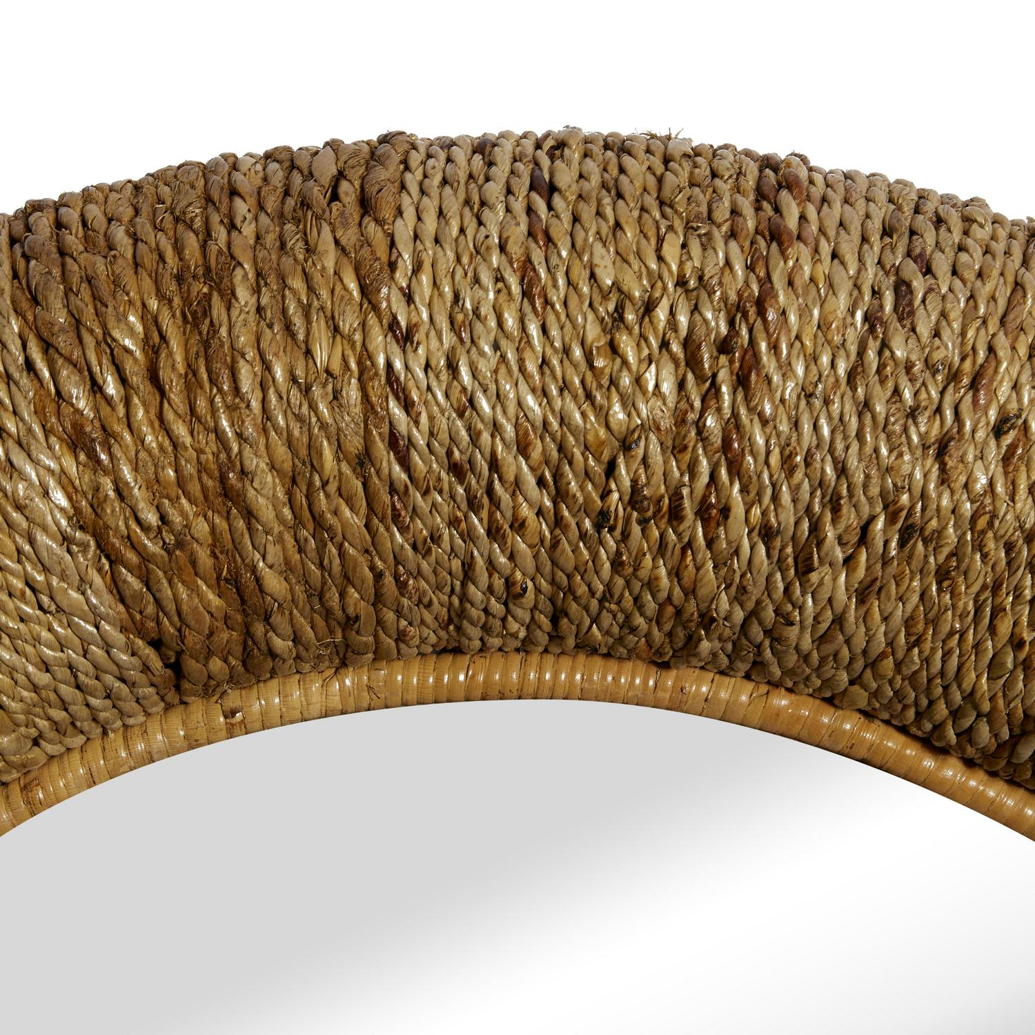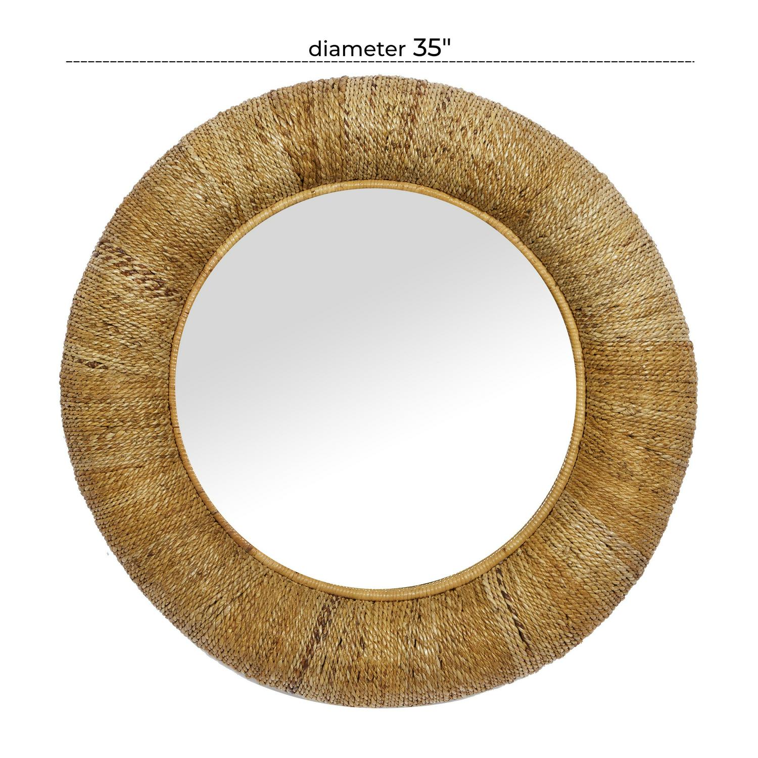 - This wall mirror features a round profile with wound up rattan fibers as frame