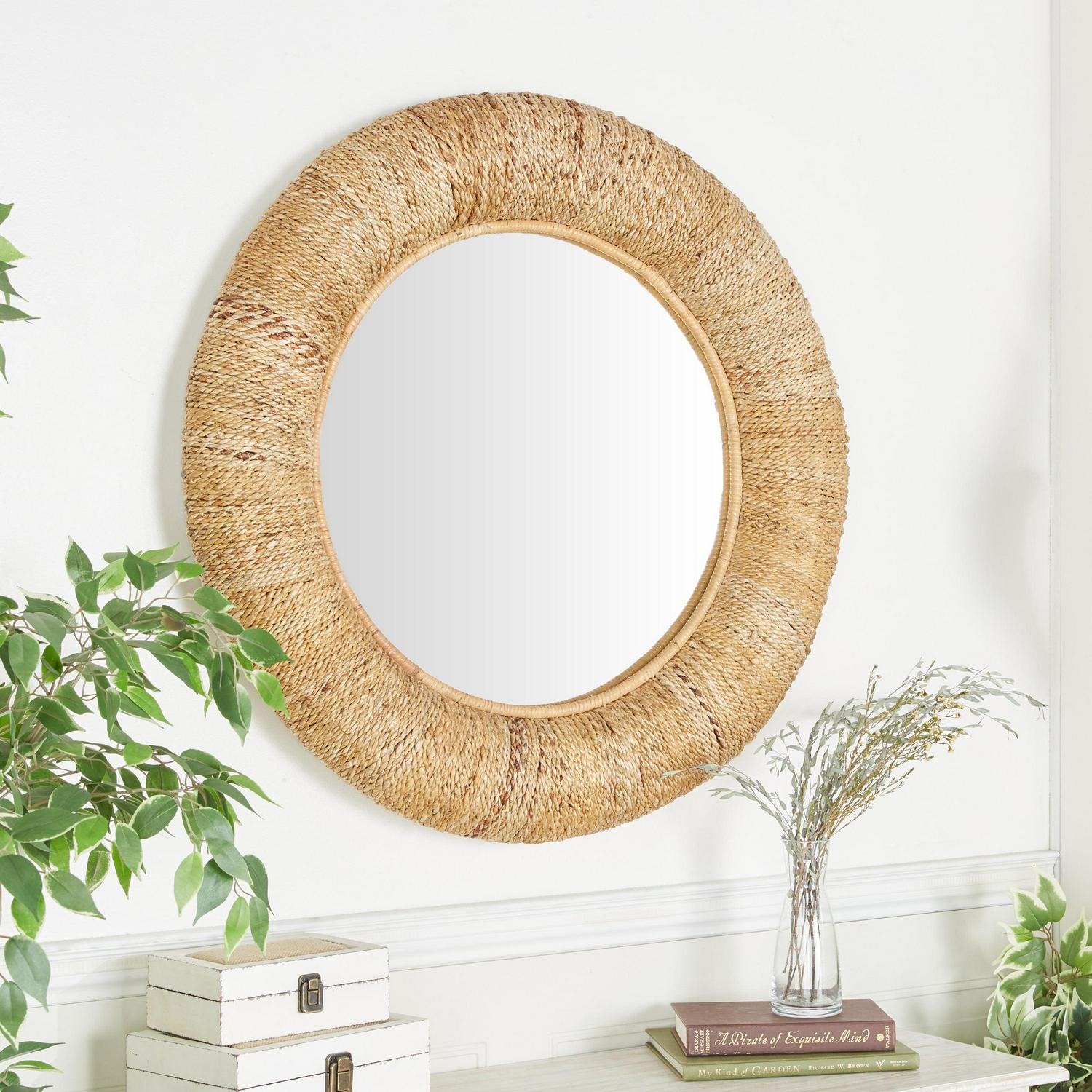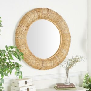 - DecMode 35″ x 35″ Brown Coiled Weaved Frame Wall Mirror makes a perfect addition to any home