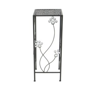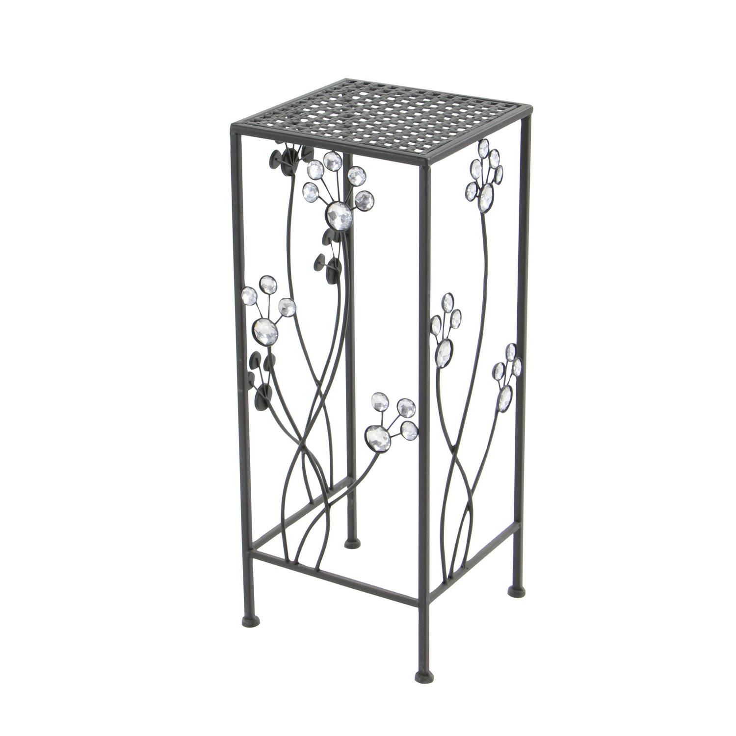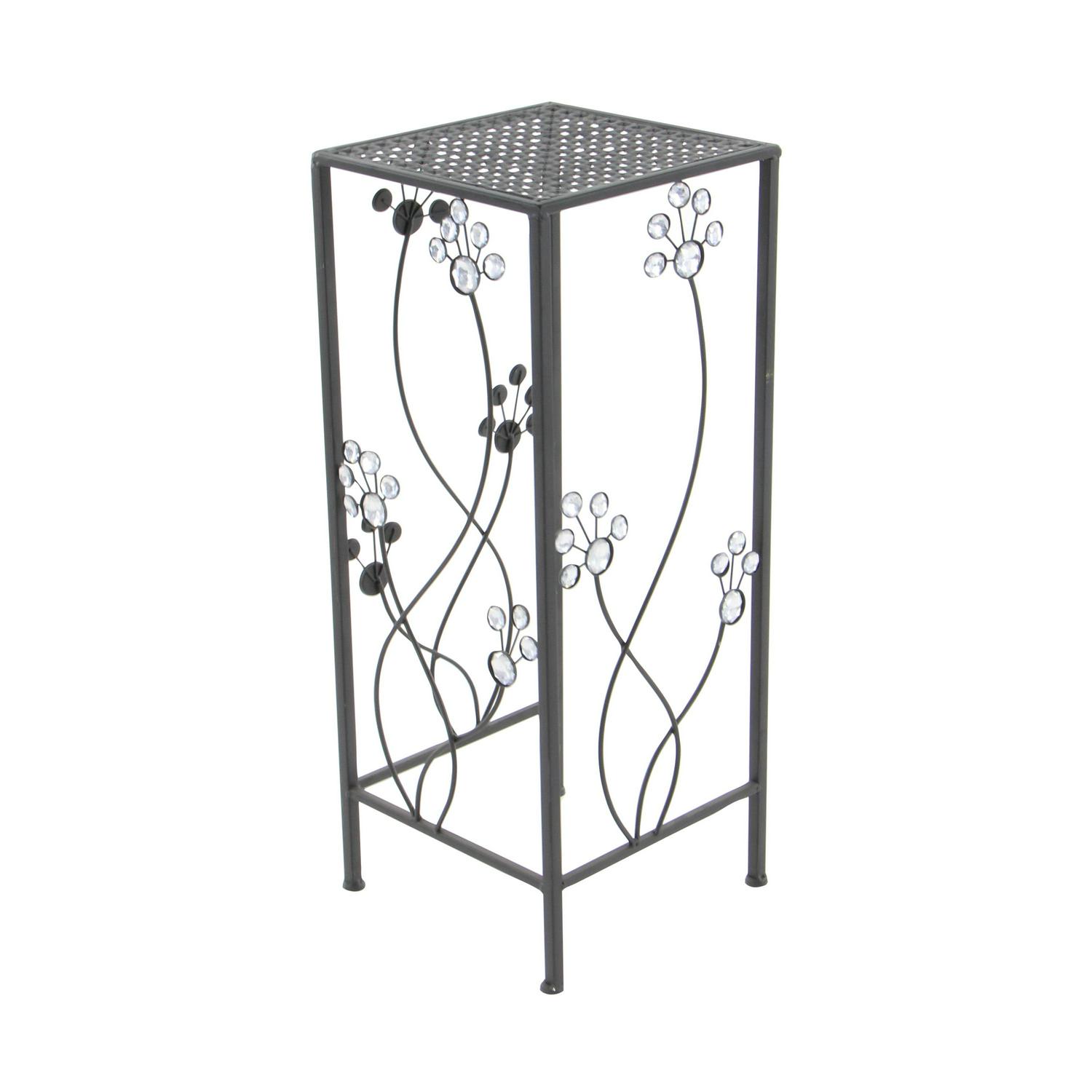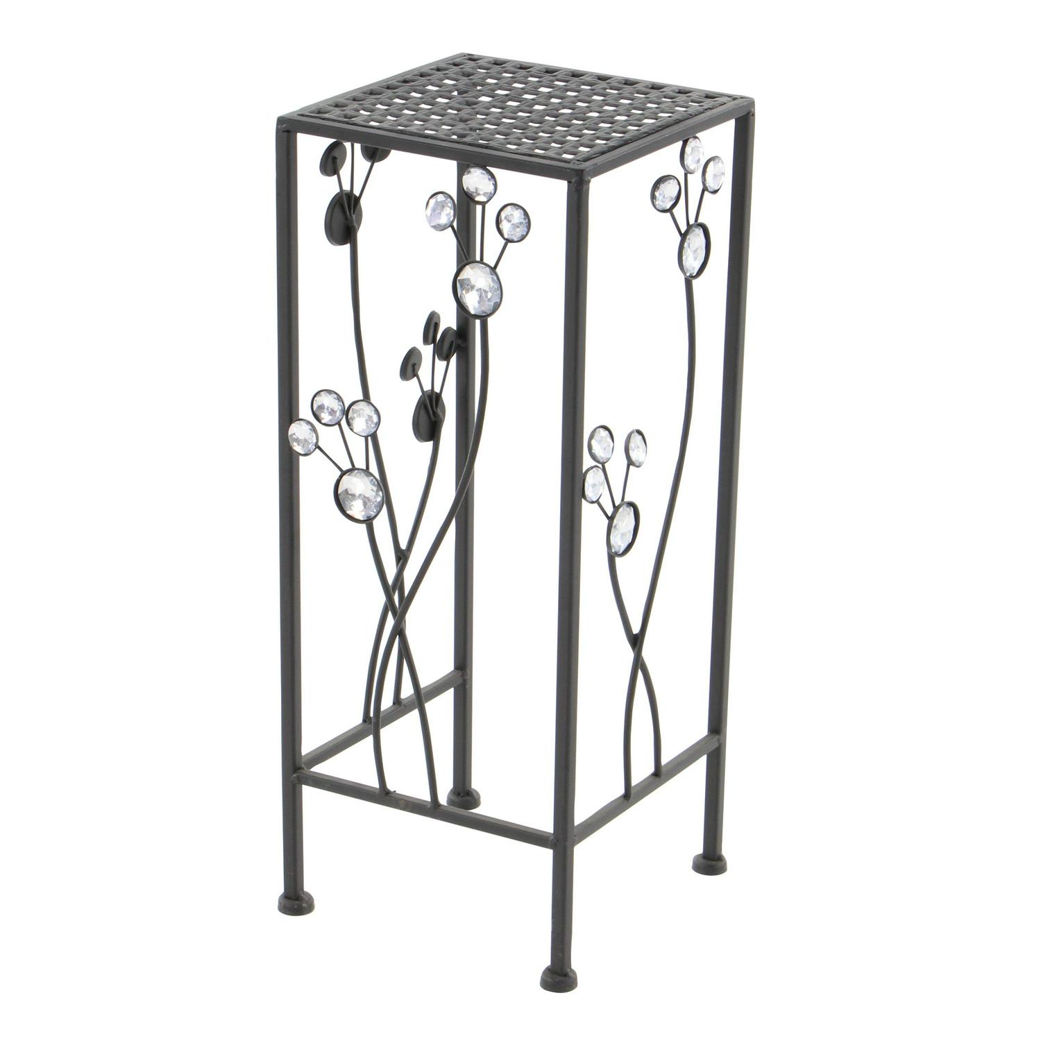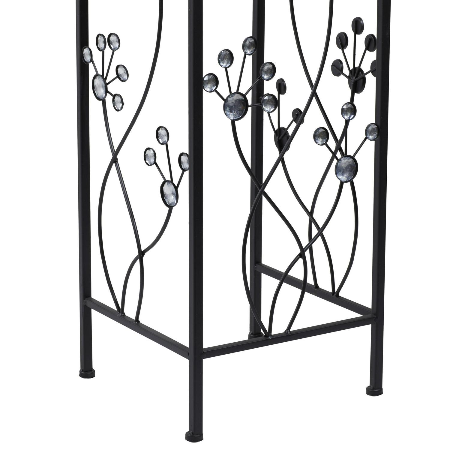 - Iron is intricately sculpted and acrylic crystals are glued to form a decorative plantstand design