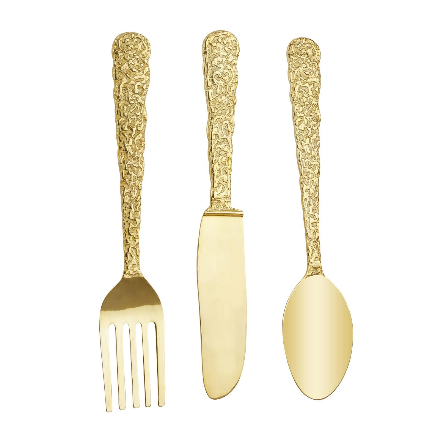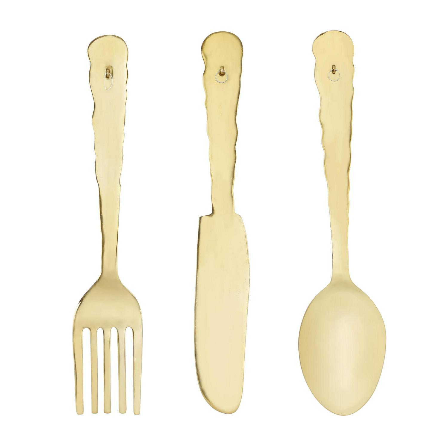 DecMode Gold Aluminum Knife, Spoon and Fork Utensils Wall Decor (3 Count)