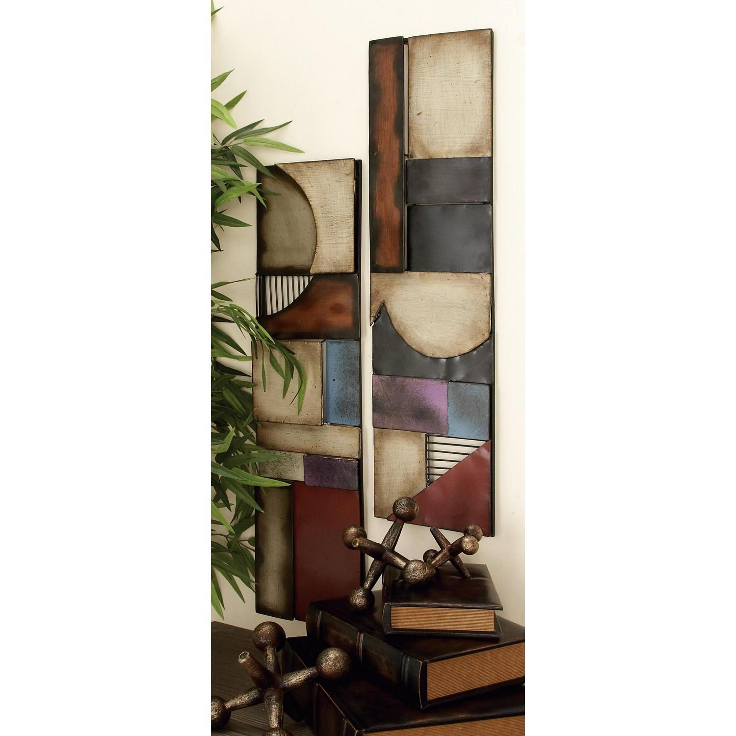 – This pair of wall plaque decor accentuates geometric shapes in rectangular frame