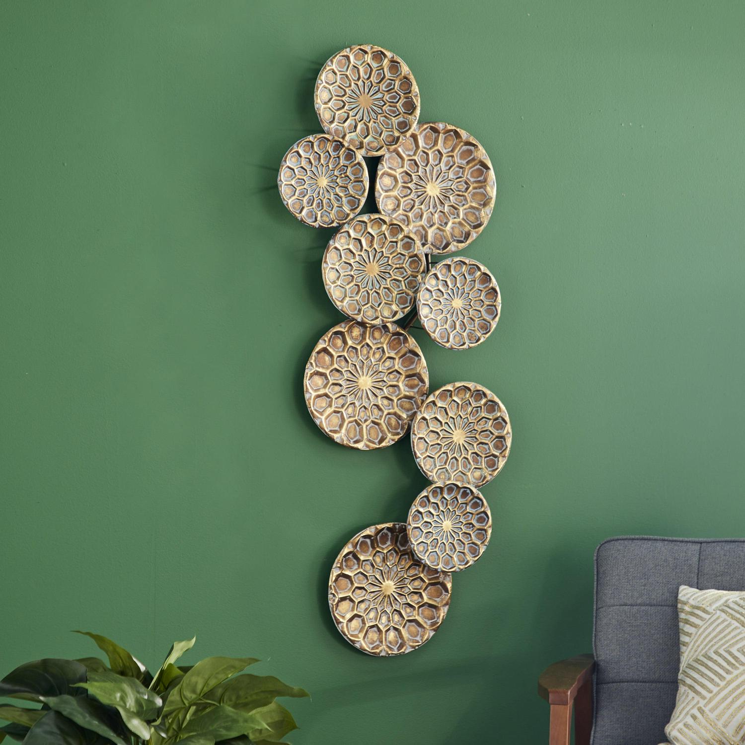 - DecMode Gold Metal Plate Wall Decor with Embossed Design makes a perfect addition to any home