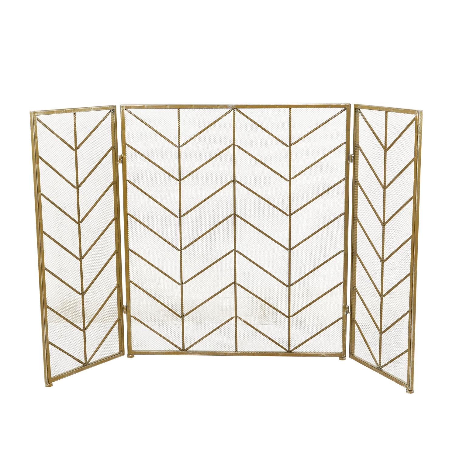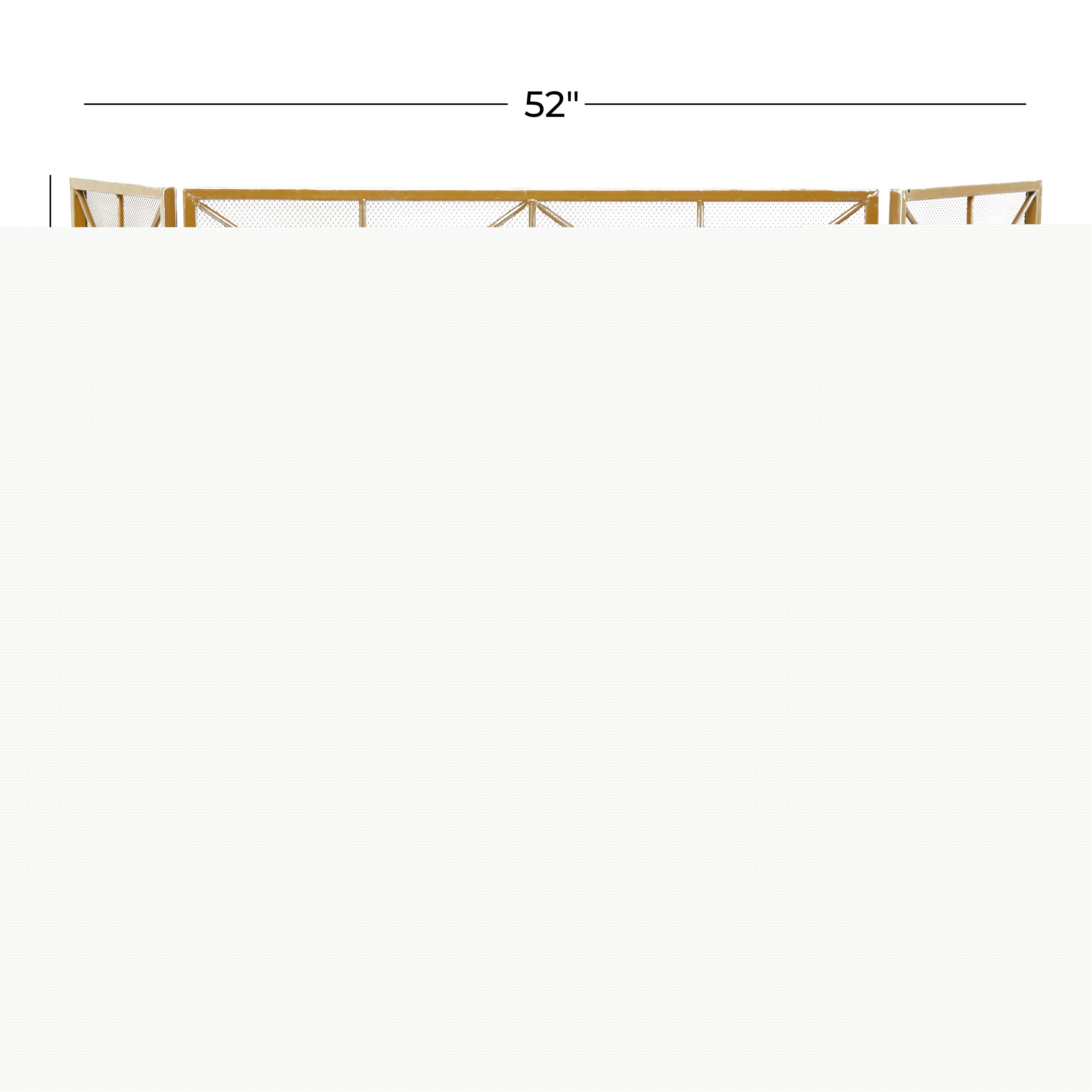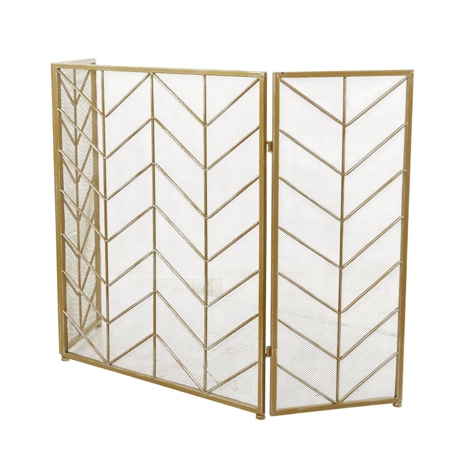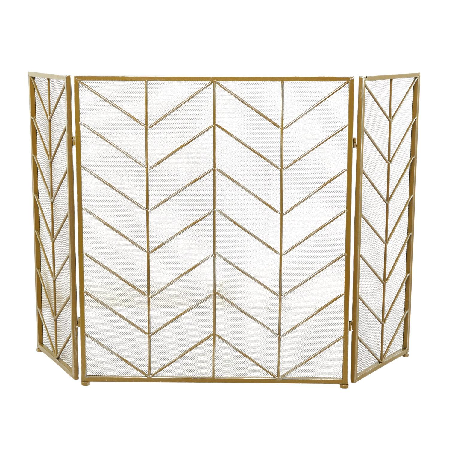DecMode 52″ x 31″ Gold Metal Foldable Mesh Netting 3 Panel Geometric Fireplace Screen with Chevron Pattern, 1-Piece is a unique addition to your stylish home. Keep those straw ambers at bay with this fire place screen. Fireplace screen adds both function and style to your home. Large gold 3-panel fire screen can be displayed in front of your fireplace to block popping embers, keeping you and your room safe. This item ships in 1 carton. Please note that this item is for decorative use only. Metal fireplace screen with a zigzag chevron pattern. This fireplace screen features paint that can resist heat up to 600 degrees. Suitable for indoor use only. This item ships fully assembled in one piece. Item features 3 panel screens. This is a single gold colored fire spark guard. Modern style.