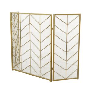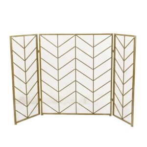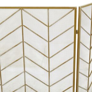 – DecMode 52″ x 31″ Gold Metal Foldable Mesh Netting 3 Panel Geometric Fireplace Screen with Chevron Pattern, 1-Piece makes a perfect addition to any home