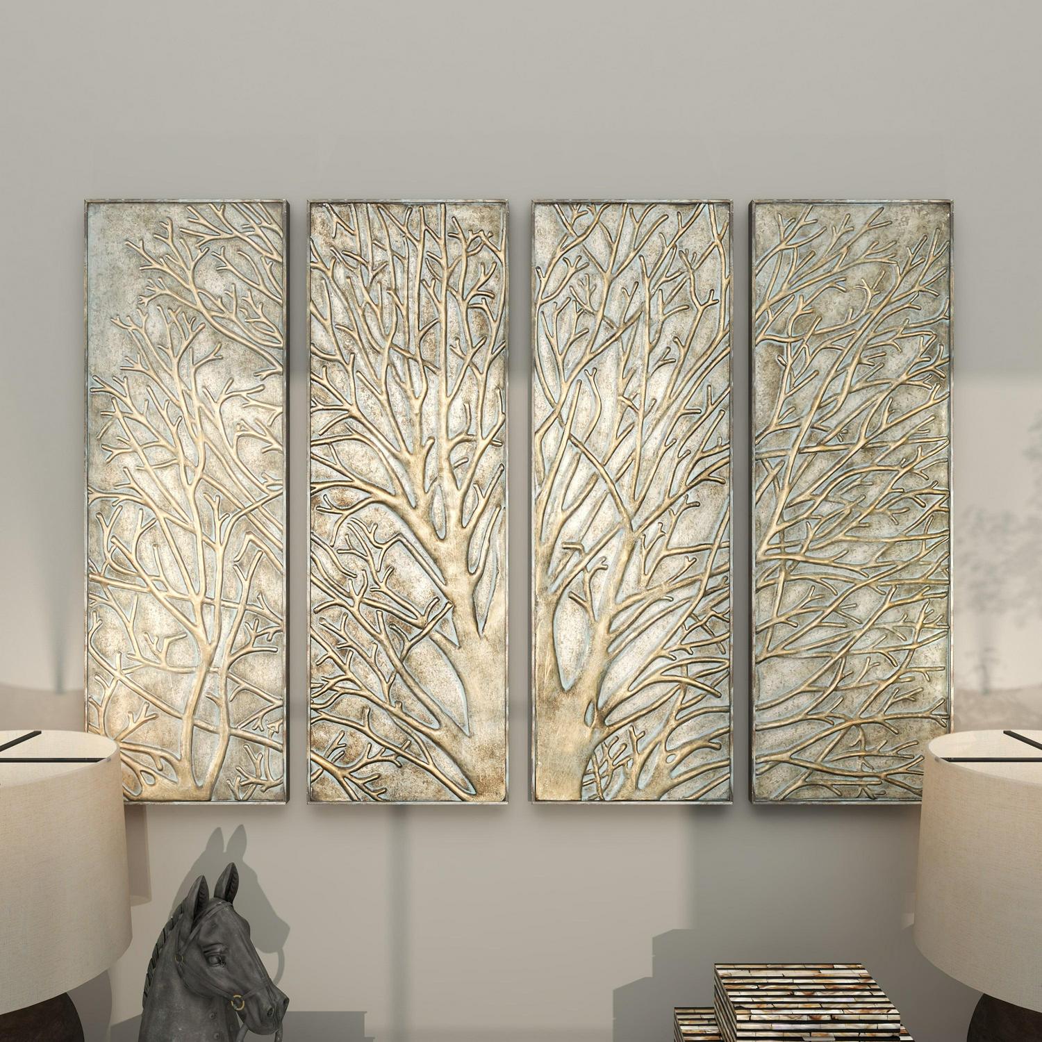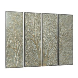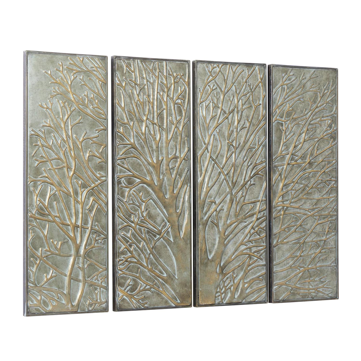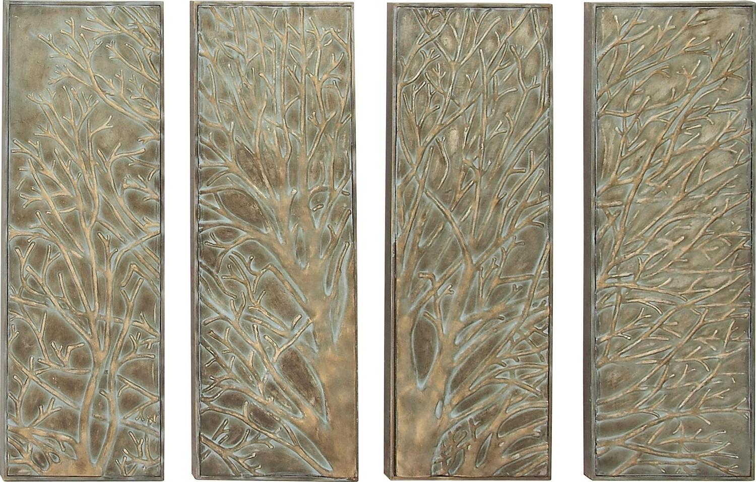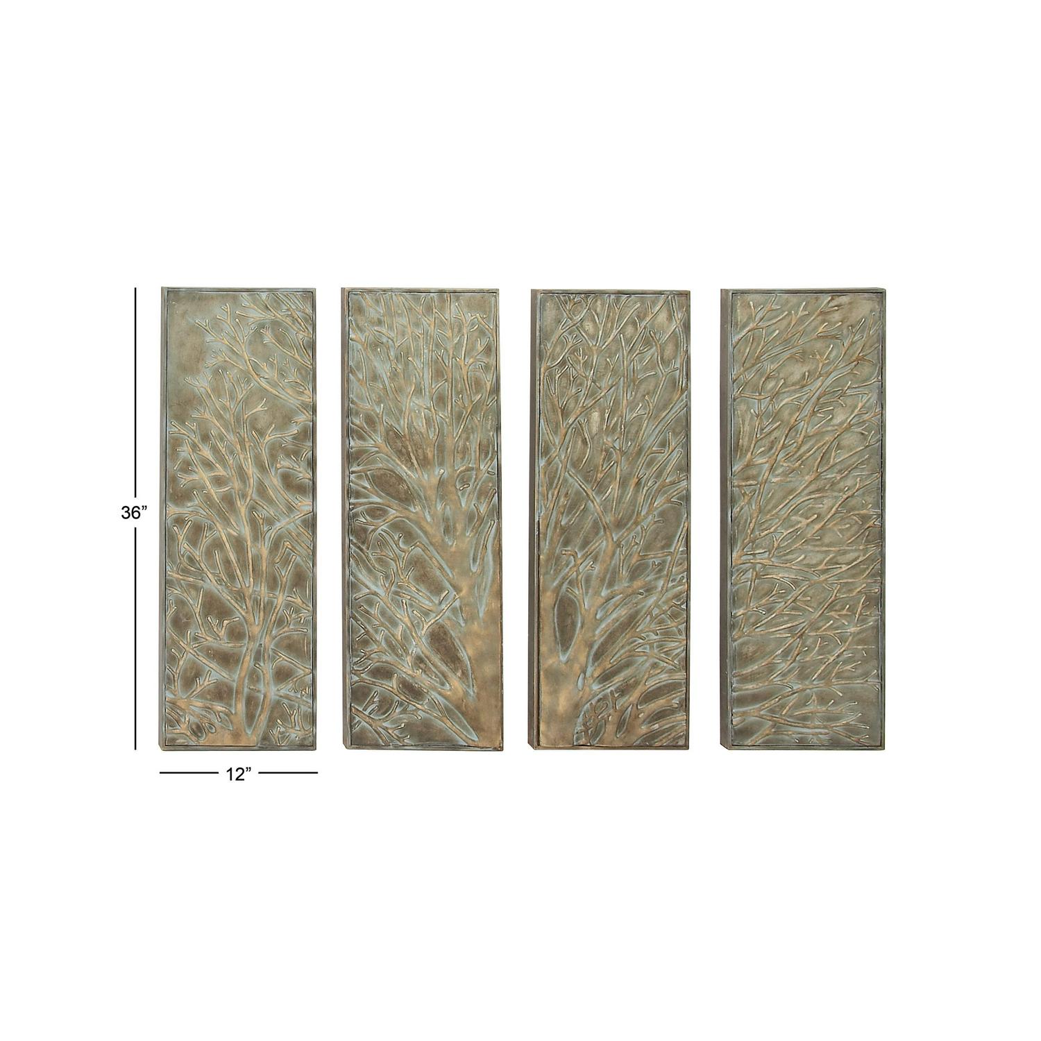 DecMode Green Metal Tree Wall Decor with Embossed Design (4 Count)