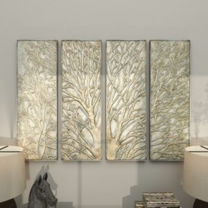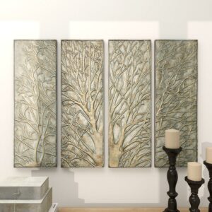 – DecMode Green Metal Tree Wall Decor with Embossed Design (4 Count) makes a perfect addition to any home
