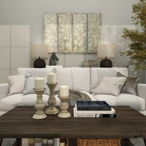 – Each wall decor measures 12L x 1W x 36H , 12L x 1W x 36H, 12L x 1W x 36H, 12L x 1W x 36H inches, and collectively weighs 15.82 lbs