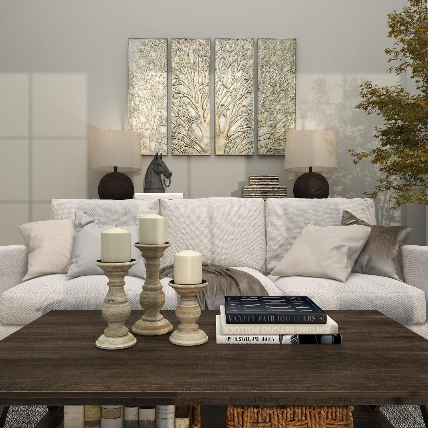 - When hung side by side, the panels create a cohesive tree design