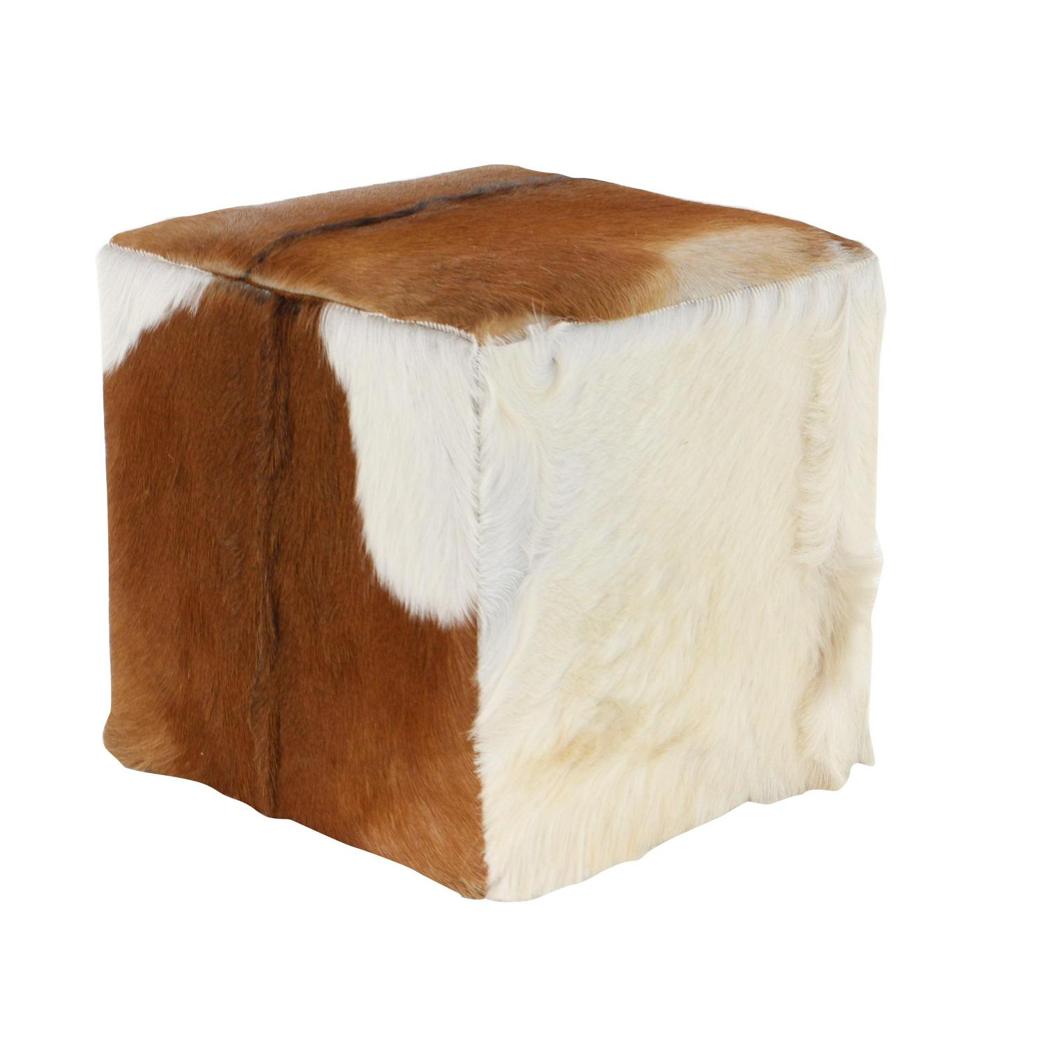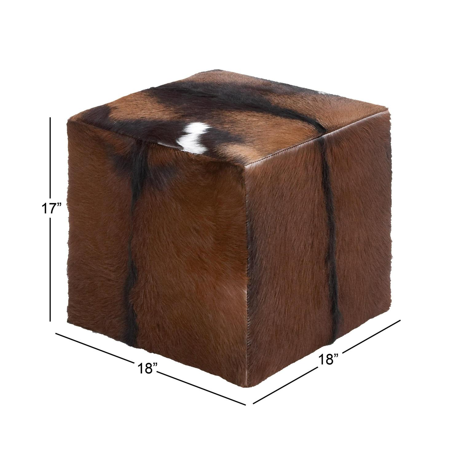 – Decorative cube stool features genuine leather with silky and soft fur texture that are invisibly sewn for a seamless design