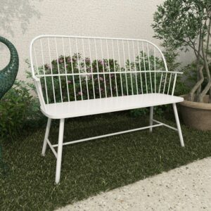 - DecMode Metal Outdoor Bench, White makes a perfect addition to any home